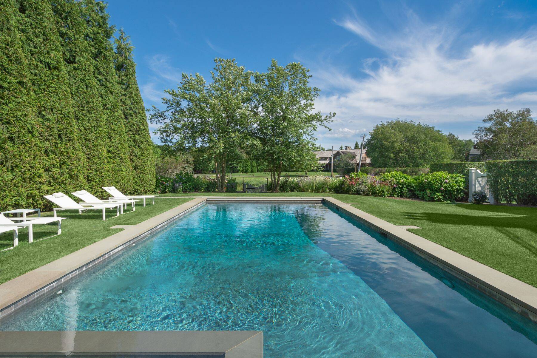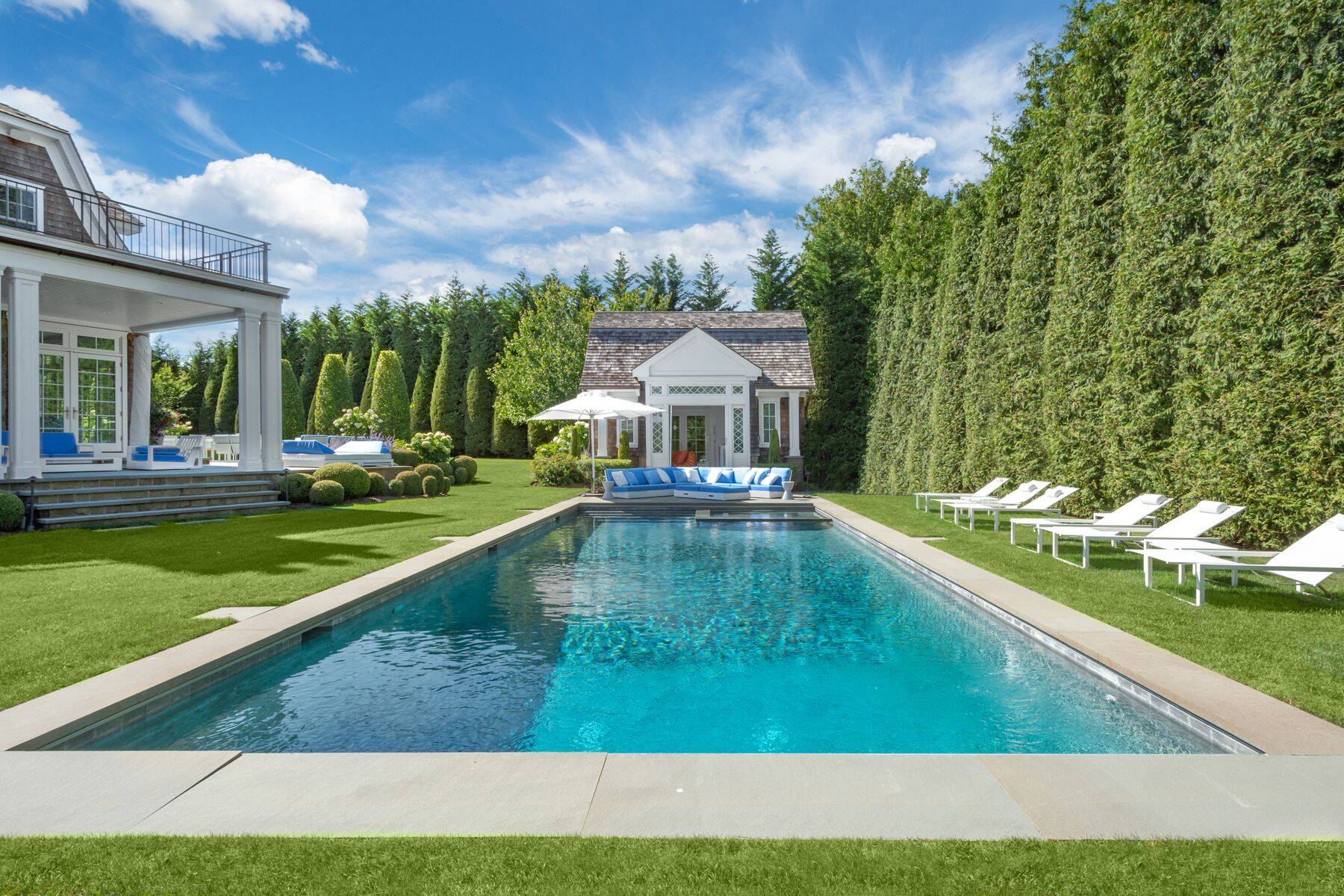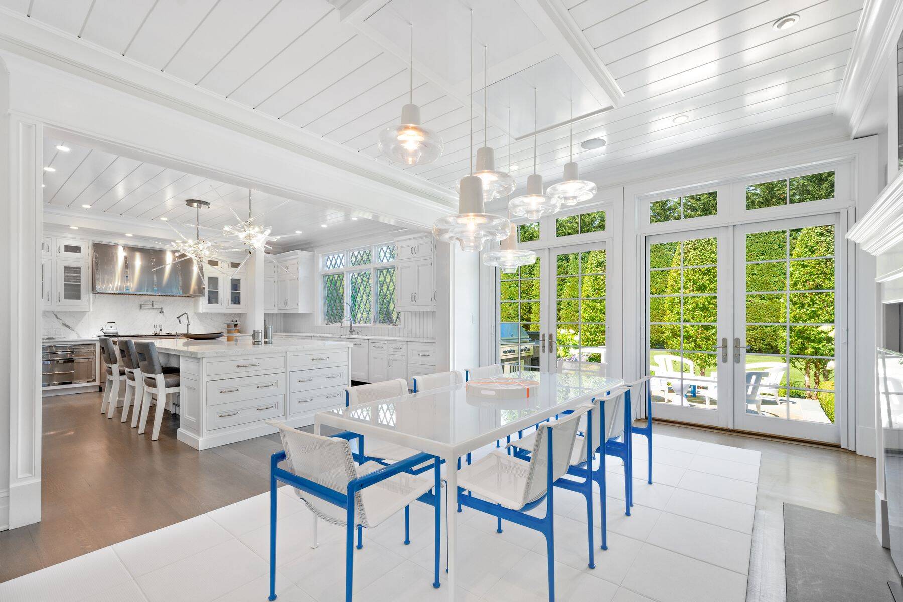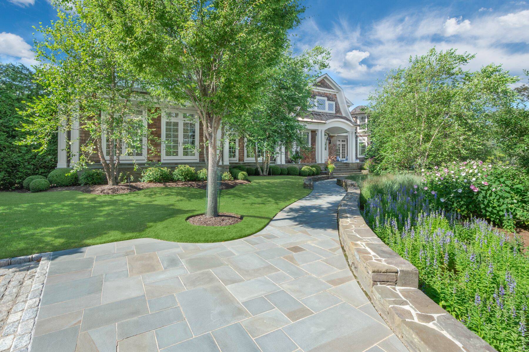 Immediate access to boats and boating is available to only a few on the east end. Combined with a terrific house this property is truly unique. Sunny, spacious and shingled, this 7,650 sq.ft. sits elegantly on one waterfront acre, entirely surrounded by beautiful gardens and mature trees. The architectural design by McDonough & Conroy is smart and takes advantage of the lovely and private setting. Indoor /outdoor living is created by principal rooms having large views with glass doors that access the extensive and inviting bluestone patios and porches. Here, one can entertain on a lofty scale or comfortably retreat to a simpler and quieter lifestyle. The first floor includes a grand 2 story foyer, a living room and dining area separated by a 2 sided fireplace, a large great room with a fireplace and a separate waterside lounge, an oversized kitchen w custom cabinetry, an immense stone center island, commercial grade appliances and designer lighting. There is a large TV room with a wet bar, a powder room and a staff area with an en-suite bedroom and laundry area. The second floor offers a large rec/game room with a full bath, a large walk in closet and a sundeck. Additionally, there 5 elegant en-suite bedrooms several with sundecks. Also included is a large 1000 (+/-) sq.ft. private primary bedroom suite with a fireplace, a stunning marble bath with radiant heat and a cozy lounge area that accesses a waterside deck. Accessory structures include an attached heated 2.5 car garage, a 18 x 40" heated pool with an electric cover and a pool house with heat and A/C, a kitchenette, and a full bath. There are 275 feet of bulkheaded waterfront with a floating dock. One can have a power boat, jet skis, kayaks, and paddle boards. The address is prestigious and the road is private. The house is in excellent condition and ready for immediate occupancy.