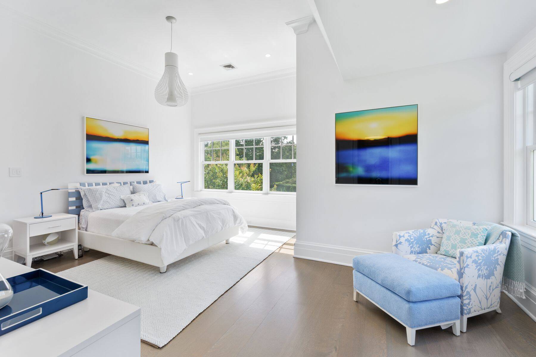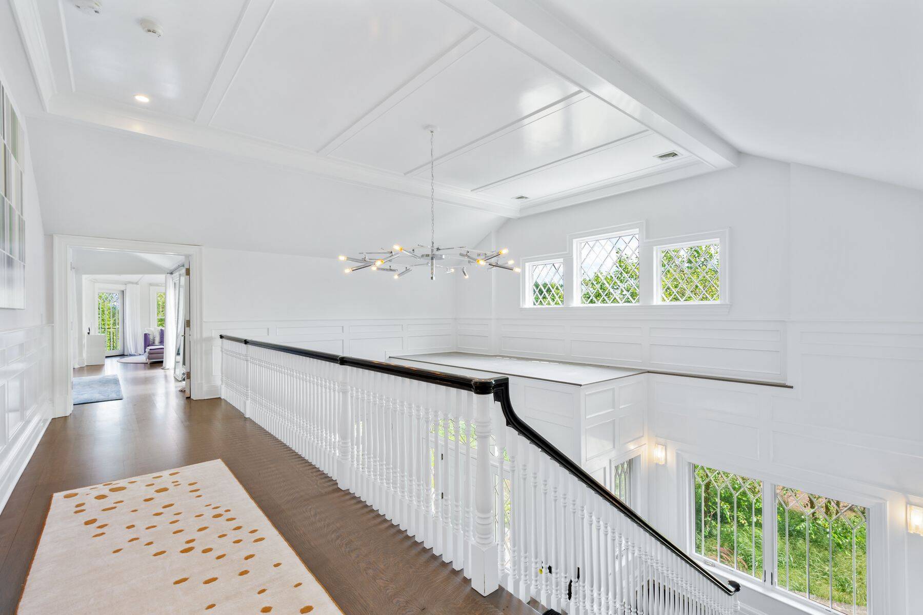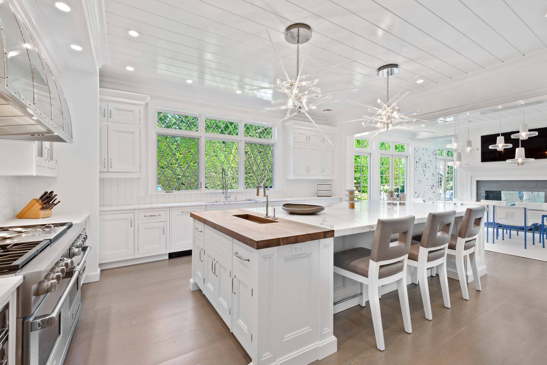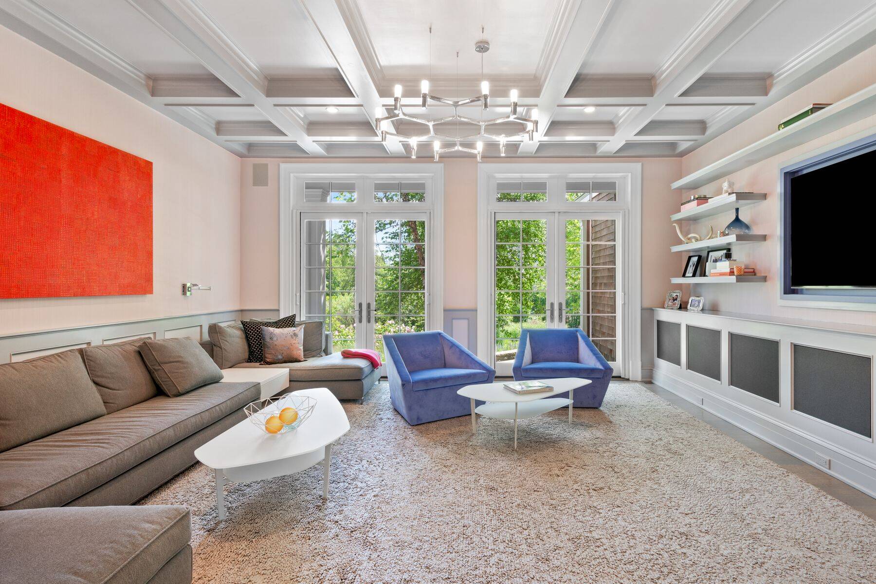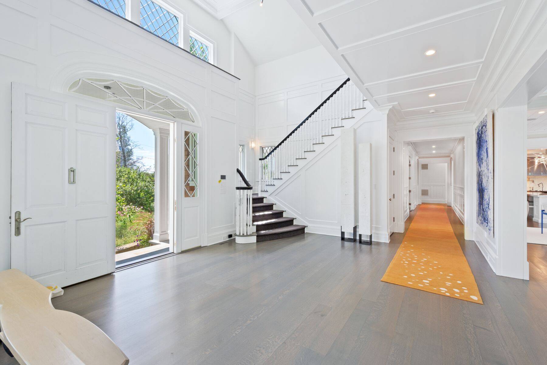 Immediate access to boats and boating is available to only a few on the east end. Combined with a terrific house this property is truly unique. Sunny, spacious and shingled, this 7,650 sq.ft. sits elegantly on one waterfront acre, entirely surrounded by beautiful gardens and mature trees. The architectural design by McDonough & Conroy is smart and takes advantage of the lovely and private setting. Indoor /outdoor living is created by principal rooms having large views with glass doors that access the extensive and inviting bluestone patios and porches. Here, one can entertain on a lofty scale or comfortably retreat to a simpler and quieter lifestyle. The first floor includes a grand 2 story foyer, a living room and dining area separated by a 2 sided fireplace, a large great room with a fireplace and a separate waterside lounge, an oversized kitchen w custom cabinetry, an immense stone center island, commercial grade appliances and designer lighting. There is a large TV room with a wet bar, a powder room and a staff area with an en-suite bedroom and laundry area. The second floor offers a large rec/game room with a full bath, a large walk in closet and a sundeck. Additionally, there 5 elegant en-suite bedrooms several with sundecks. Also included is a large 1000 (+/-) sq.ft. private primary bedroom suite with a fireplace, a stunning marble bath with radiant heat and a cozy lounge area that accesses a waterside deck. Accessory structures include an attached heated 2.5 car garage, a 18 x 40" heated pool with an electric cover and a pool house with heat and A/C, a kitchenette, and a full bath. There are 275 feet of bulkheaded waterfront with a floating dock. One can have a power boat, jet skis, kayaks, and paddle boards. The address is prestigious and the road is private. The house is in excellent condition and ready for immediate occupancy.