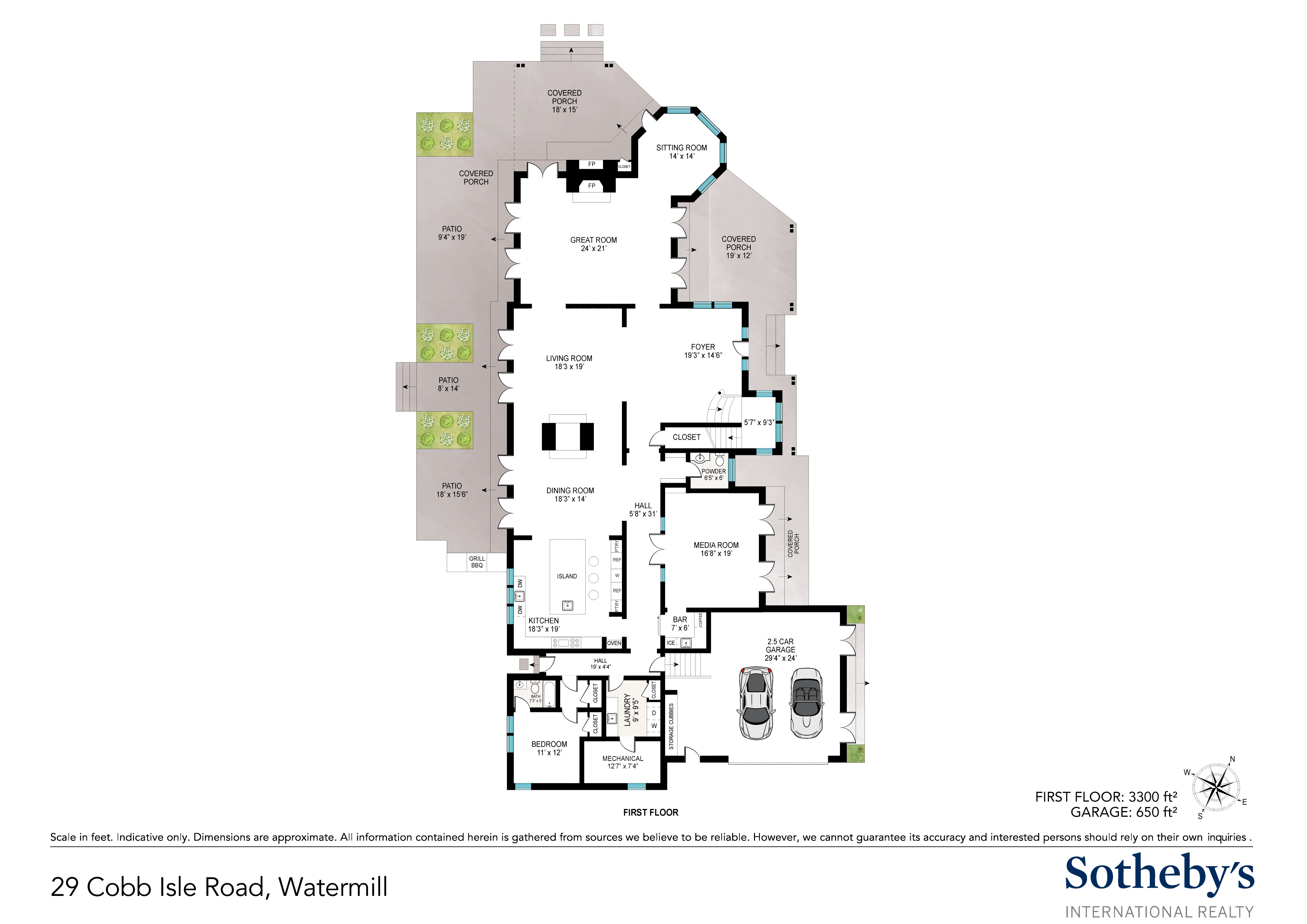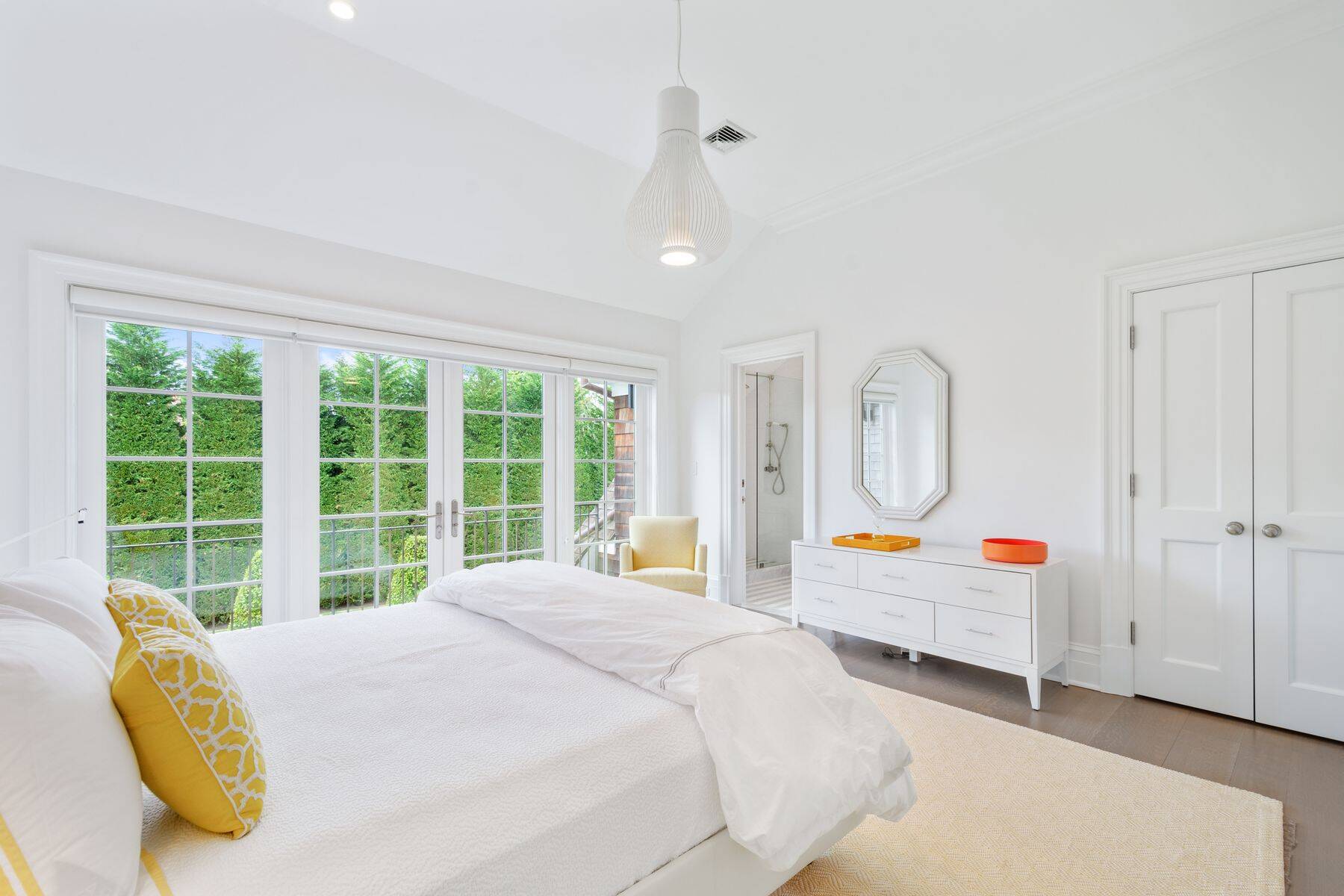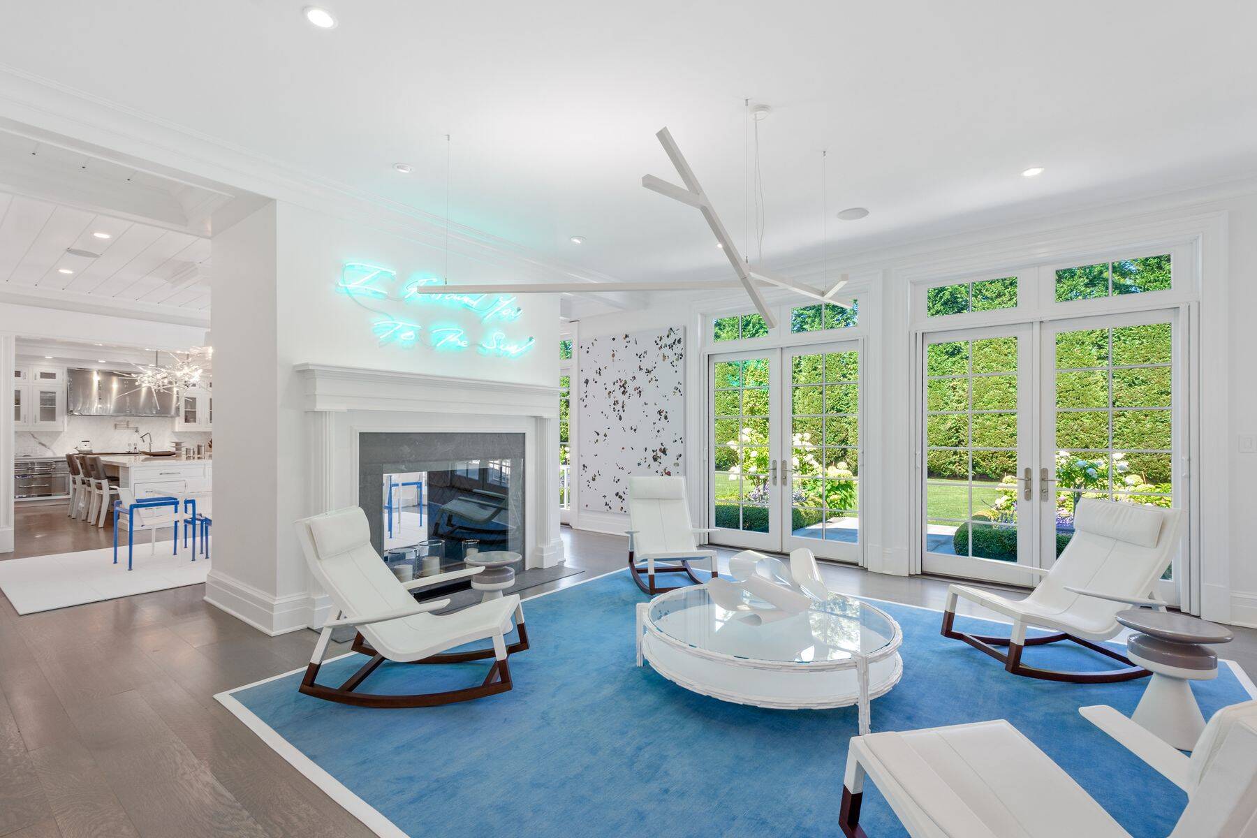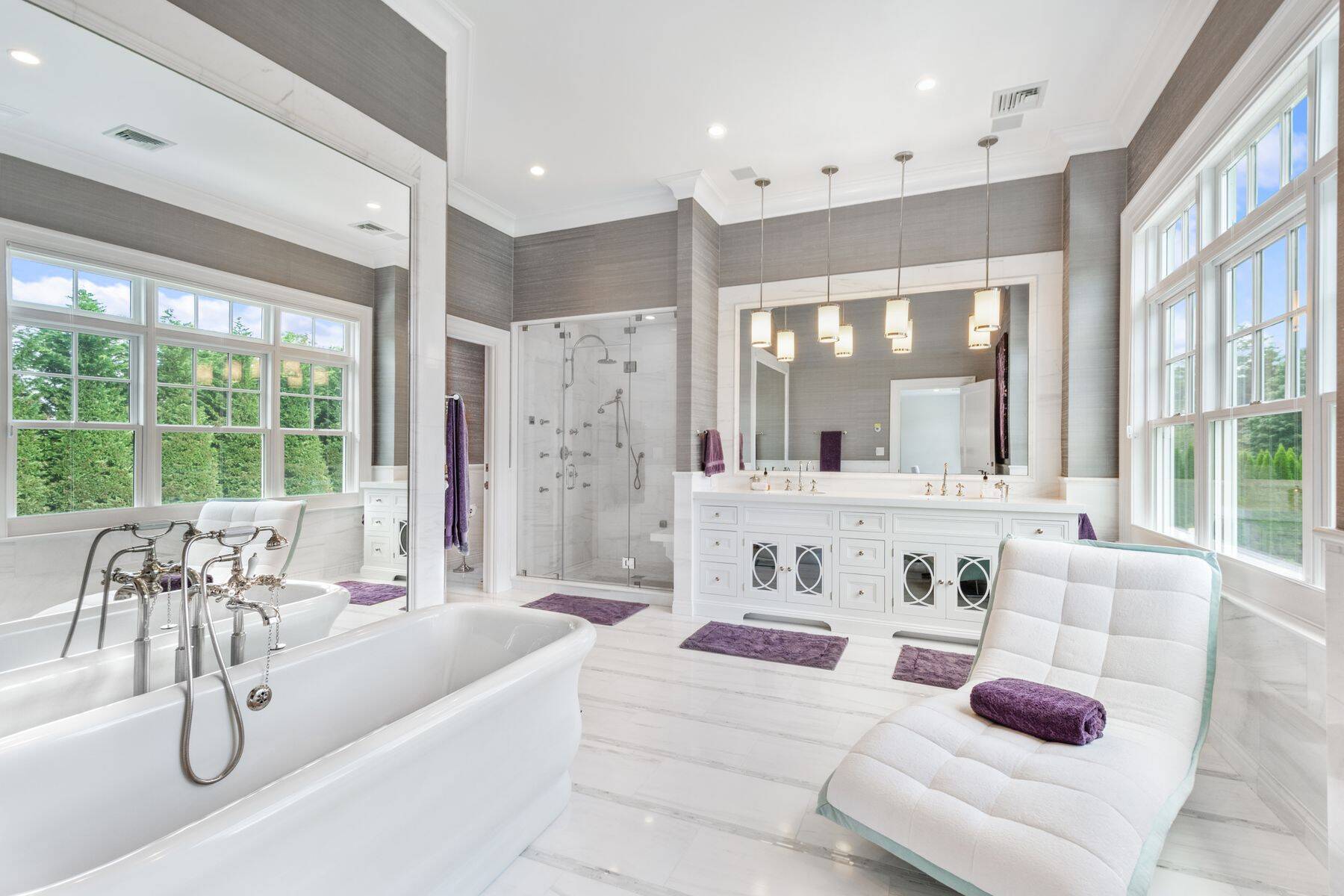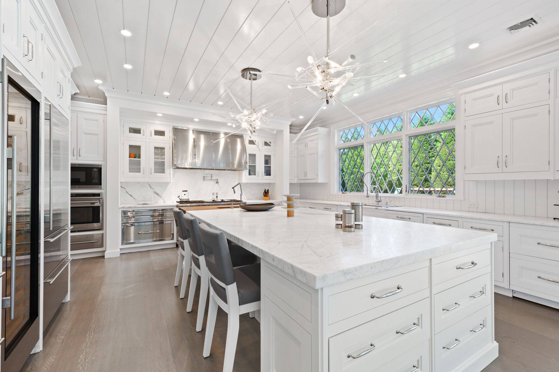 Immediate access to boats and boating is available to only a few on the east end. Combined with a terrific house this property is truly unique. Sunny, spacious and shingled, this 7,650 sq.ft. sits elegantly on one waterfront acre, entirely surrounded by beautiful gardens and mature trees. The architectural design by McDonough & Conroy is smart and takes advantage of the lovely and private setting. Indoor /outdoor living is created by principal rooms having large views with glass doors that access the extensive and inviting bluestone patios and porches. Here, one can entertain on a lofty scale or comfortably retreat to a simpler and quieter lifestyle. The first floor includes a grand 2 story foyer, a living room and dining area separated by a 2 sided fireplace, a large great room with a fireplace and a separate waterside lounge, an oversized kitchen w custom cabinetry, an immense stone center island, commercial grade appliances and designer lighting. There is a large TV room with a wet bar, a powder room and a staff area with an en-suite bedroom and laundry area. The second floor offers a large rec/game room with a full bath, a large walk in closet and a sundeck. Additionally, there 5 elegant en-suite bedrooms several with sundecks. Also included is a large 1000 (+/-) sq.ft. private primary bedroom suite with a fireplace, a stunning marble bath with radiant heat and a cozy lounge area that accesses a waterside deck. Accessory structures include an attached heated 2.5 car garage, a 18 x 40" heated pool with an electric cover and a pool house with heat and A/C, a kitchenette, and a full bath. There are 275 feet of bulkheaded waterfront with a floating dock. One can have a power boat, jet skis, kayaks, and paddle boards. The address is prestigious and the road is private. The house is in excellent condition and ready for immediate occupancy.