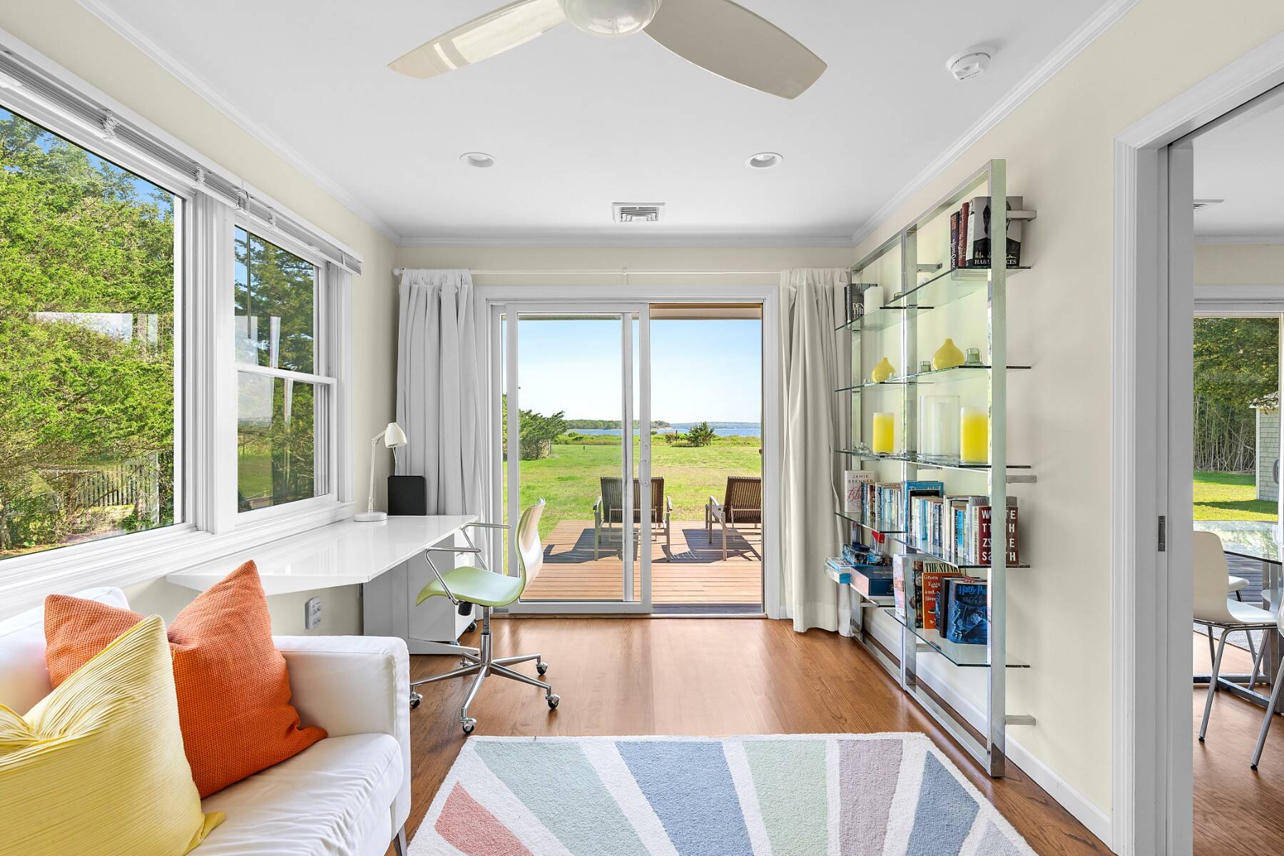 An exceptional opportunity to own a waterfront home on coveted Wades Beach. This south-facing property overlooks the sparkling Peconic Bay, offering stunning views all the way to North Haven. Set on a generously sized lot, the existing cottage is impeccably maintained, perfect for effortless escapes. For those with bigger dreams, the property boasts a large building envelope, presenting potential for expansion or the creation of a custom home. Whether you're seeking a charming getaway or a blank canvas to bring your waterfront vision to life, this is a rare chance to own prime real estate in a truly idyllic setting.