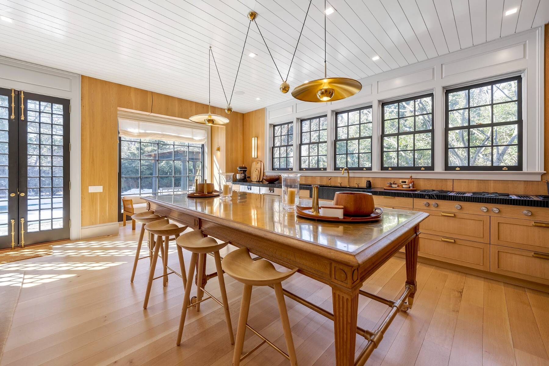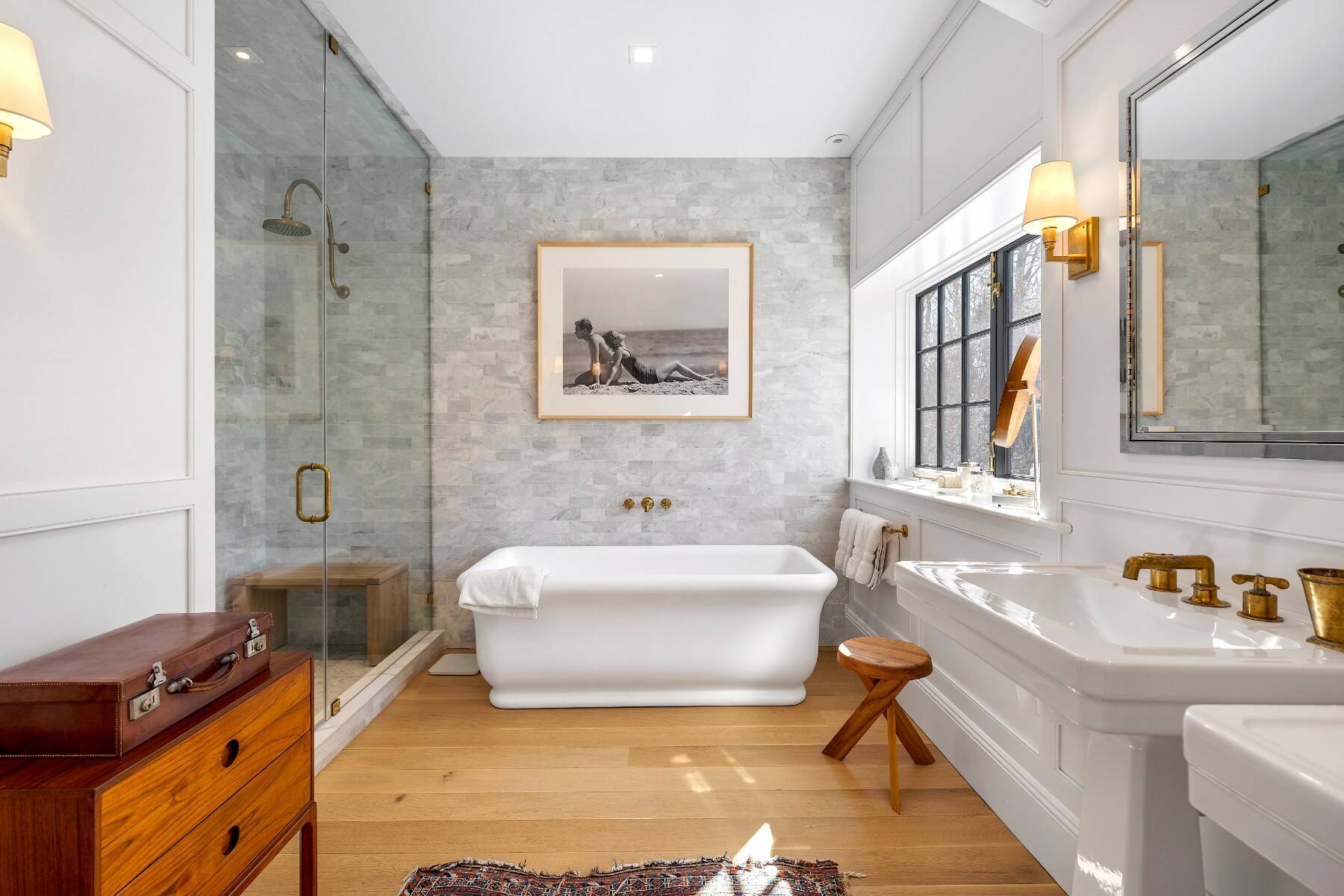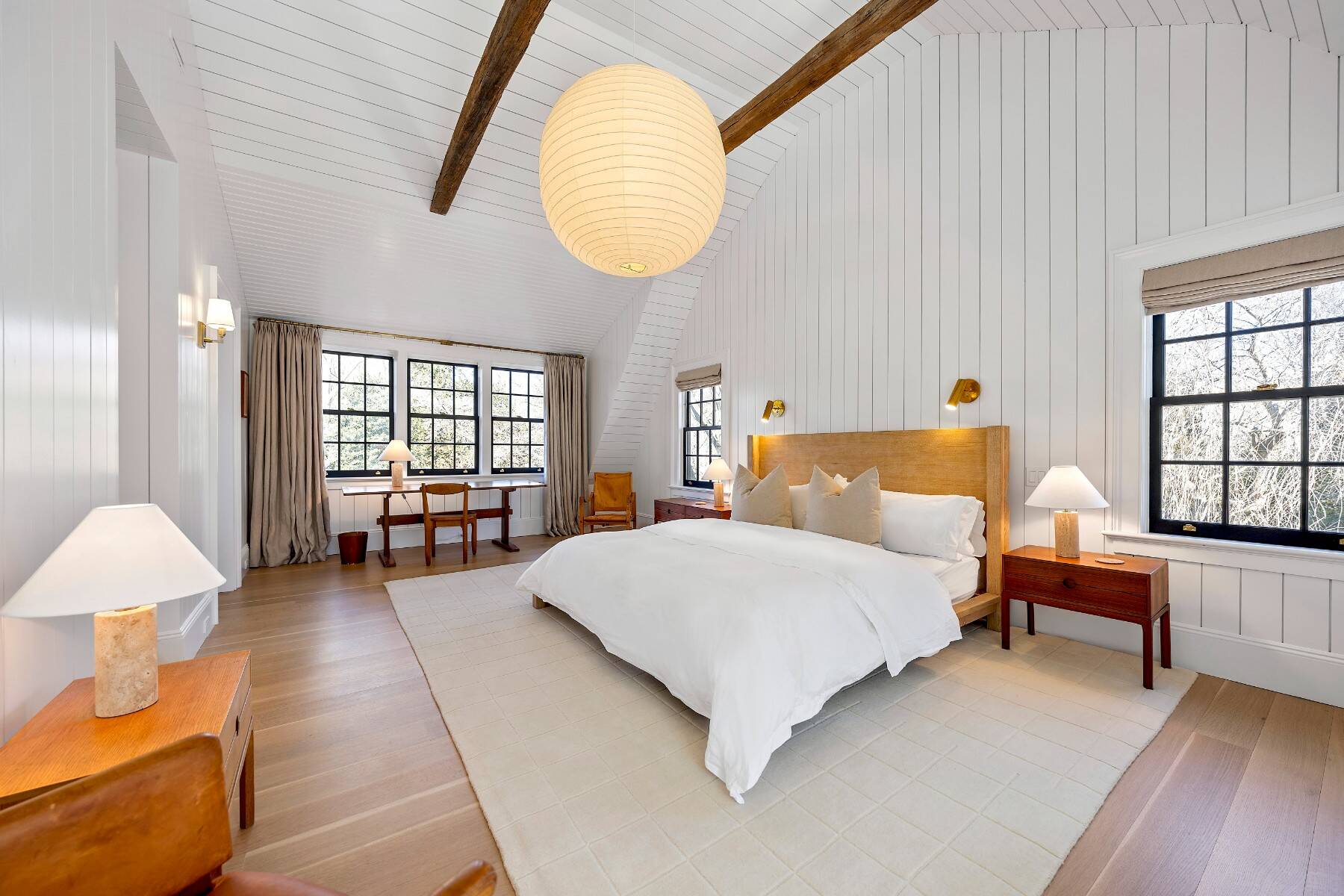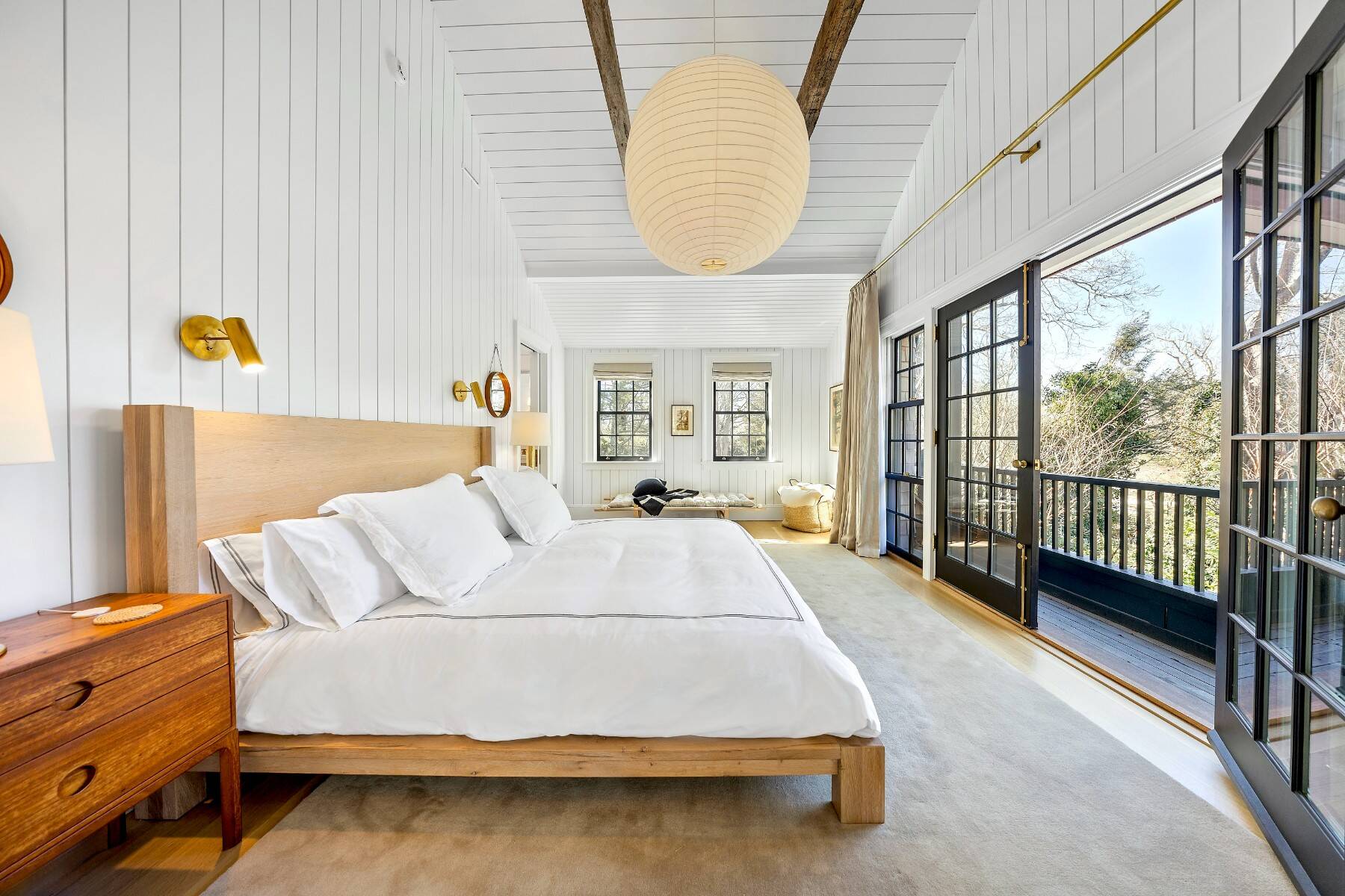 Superbly designed expansion and complete rebuild of a classic 1894 Carriage House by noted designers, this estate is hidden on an ultra-private 1.4 gated acre of park-like landscaping and gardens in prestige East Hampton Village South location minutes to Ocean and Main Street. Warm, timeless interiors featuring dramatic 25 ft x 25 ft original beamed great room with 10 ft ceilings and fireplace, French doors to large brick floored sunporch, huge family room/dining/kitchen with custom cabinetry, marble counters, and wall of windows overlooking oversized heated pool with dining pavilion and hydrangea gardens. Ground floor primary suite, plus two second floor primary suites, two additional en-suite guest bedrooms, and sun-filled upstairs sitting room. Laundry facilities on the first and second floor. Ultra-lush grounds with magnificent plantings, detached pool house and gym buildings, outdoor kitchen, and separate enchanting dining/entertaining allée with monumental stone table. An amazing turn-key oasis in a coveted south-of-the-highway location.