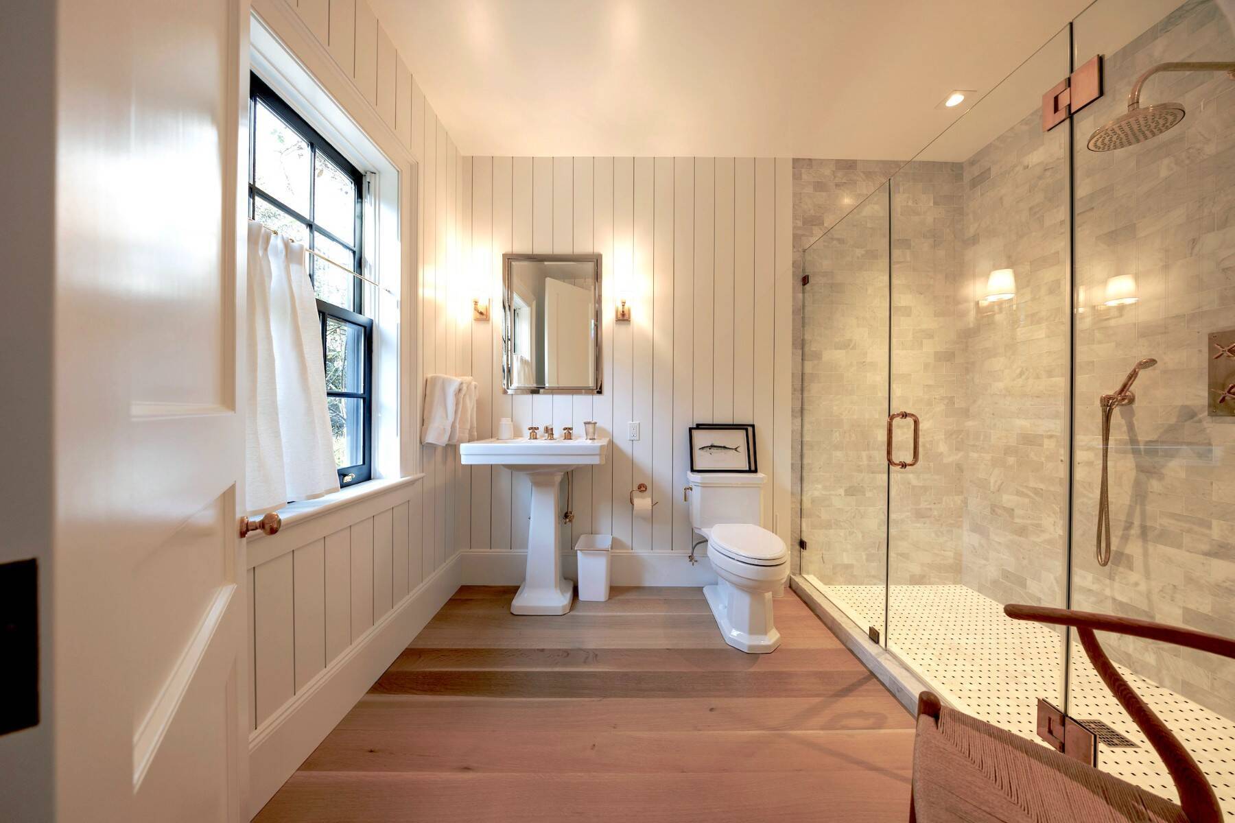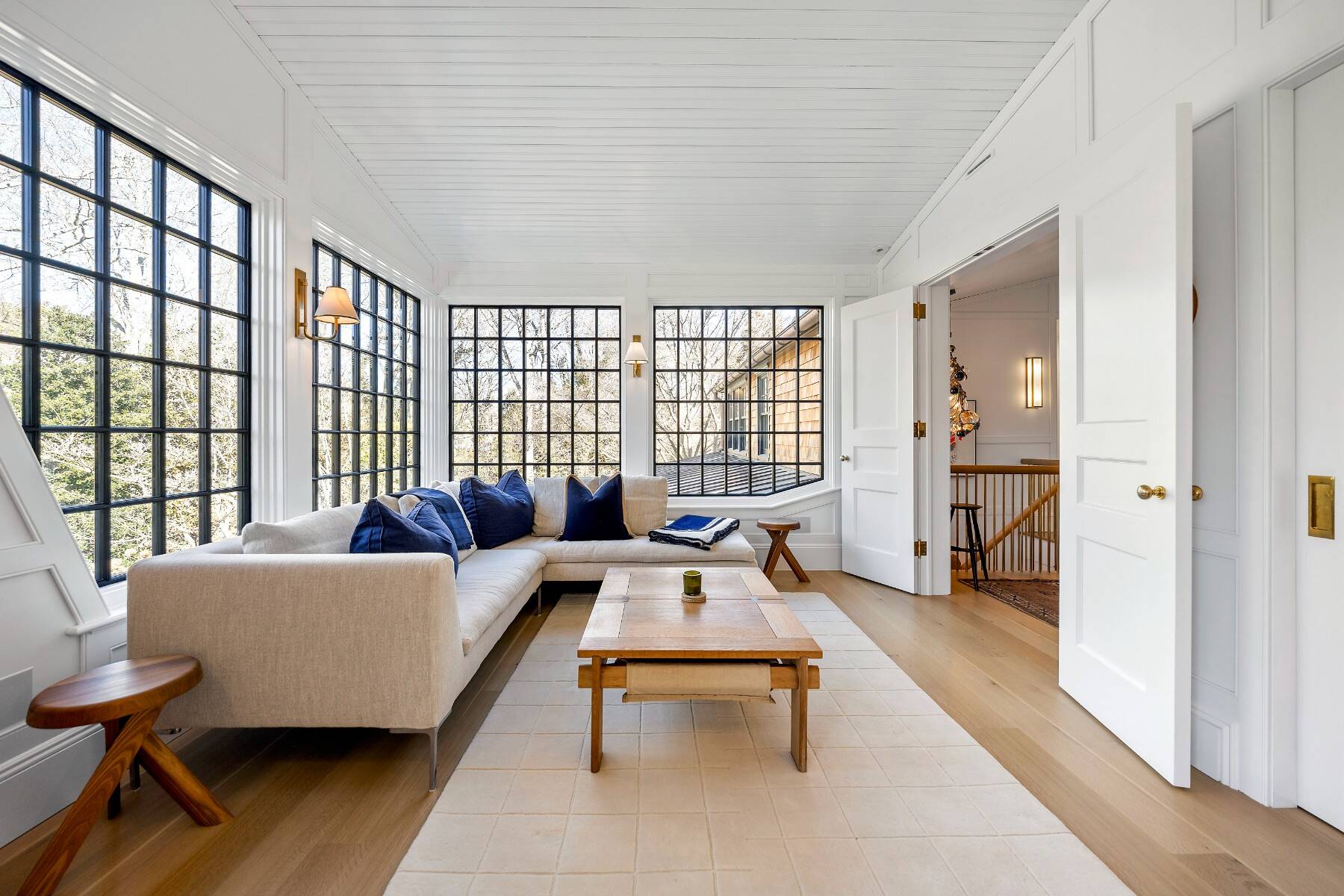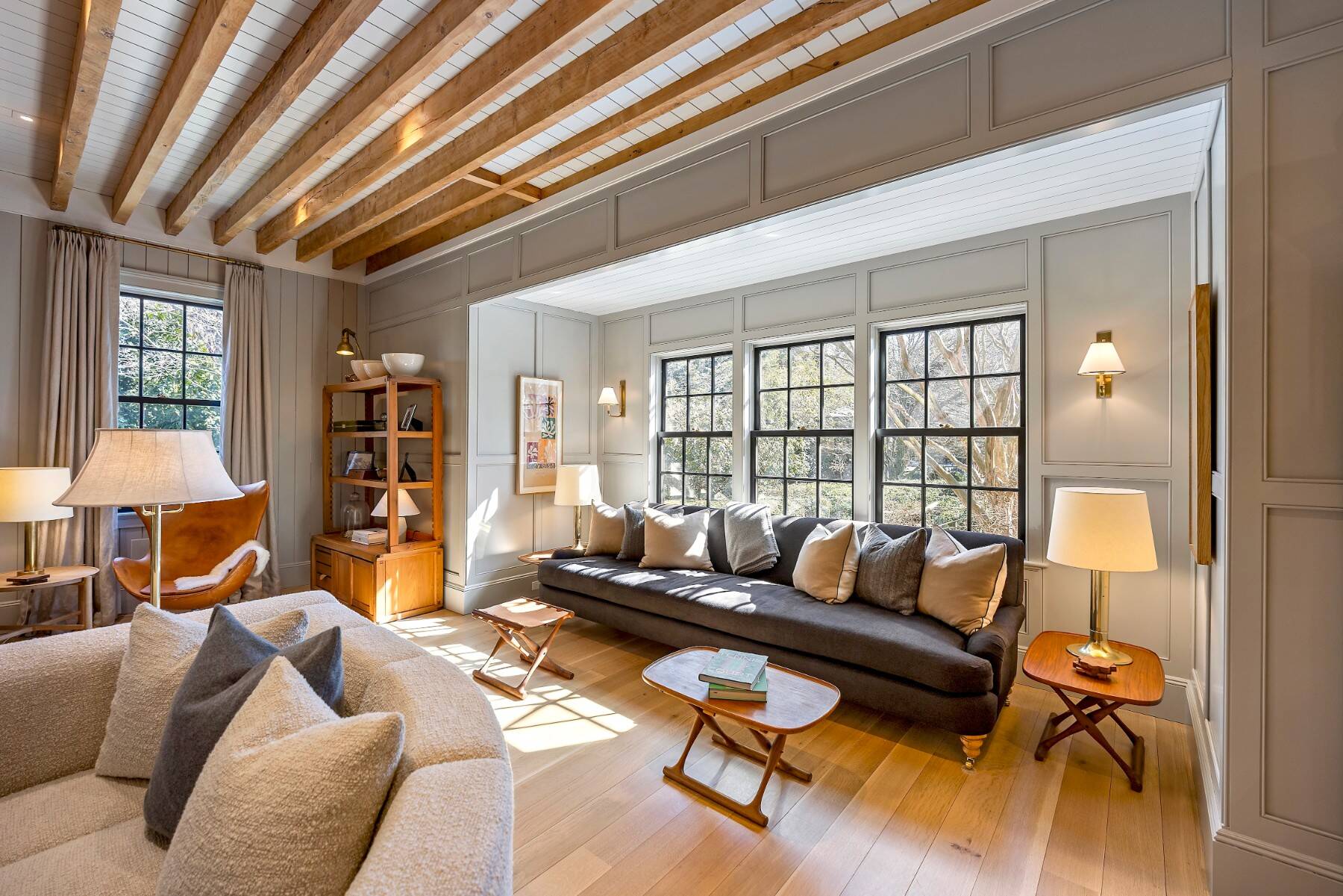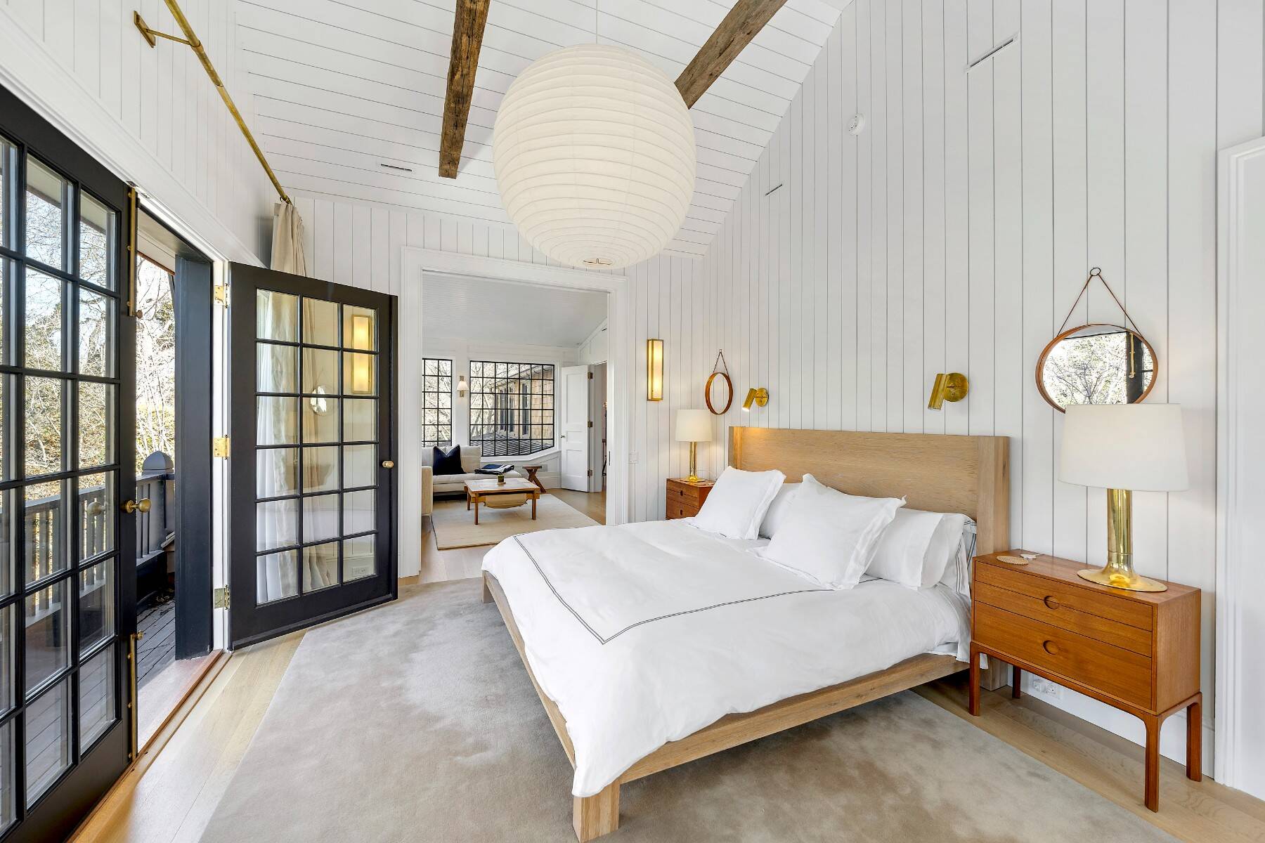 Superbly designed expansion and complete rebuild of a classic 1894 Carriage House by noted designers, this estate is hidden on an ultra-private 1.4 gated acre of park-like landscaping and gardens in prestige East Hampton Village South location minutes to Ocean and Main Street. Warm, timeless interiors featuring dramatic 25 ft x 25 ft original beamed great room with 10 ft ceilings and fireplace, French doors to large brick floored sunporch, huge family room/dining/kitchen with custom cabinetry, marble counters, and wall of windows overlooking oversized heated pool with dining pavilion and hydrangea gardens. Ground floor primary suite, plus two second floor primary suites, two additional en-suite guest bedrooms, and sun-filled upstairs sitting room. Laundry facilities on the first and second floor. Ultra-lush grounds with magnificent plantings, detached pool house and gym buildings, outdoor kitchen, and separate enchanting dining/entertaining allée with monumental stone table. An amazing turn-key oasis in a coveted south-of-the-highway location.