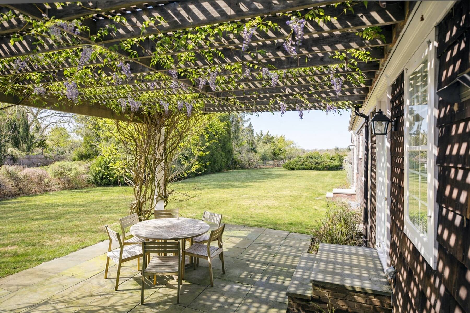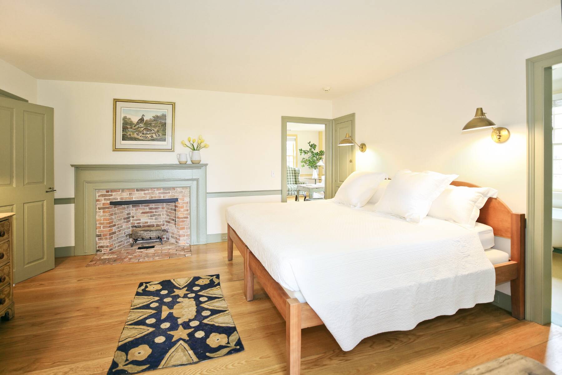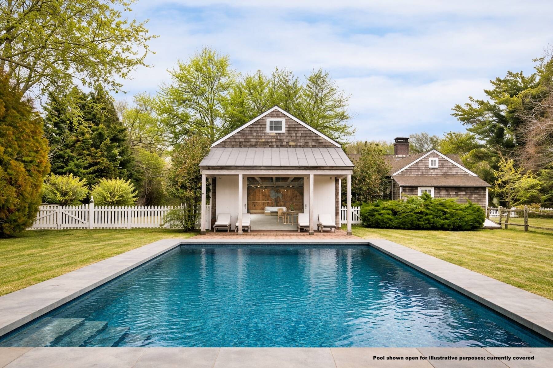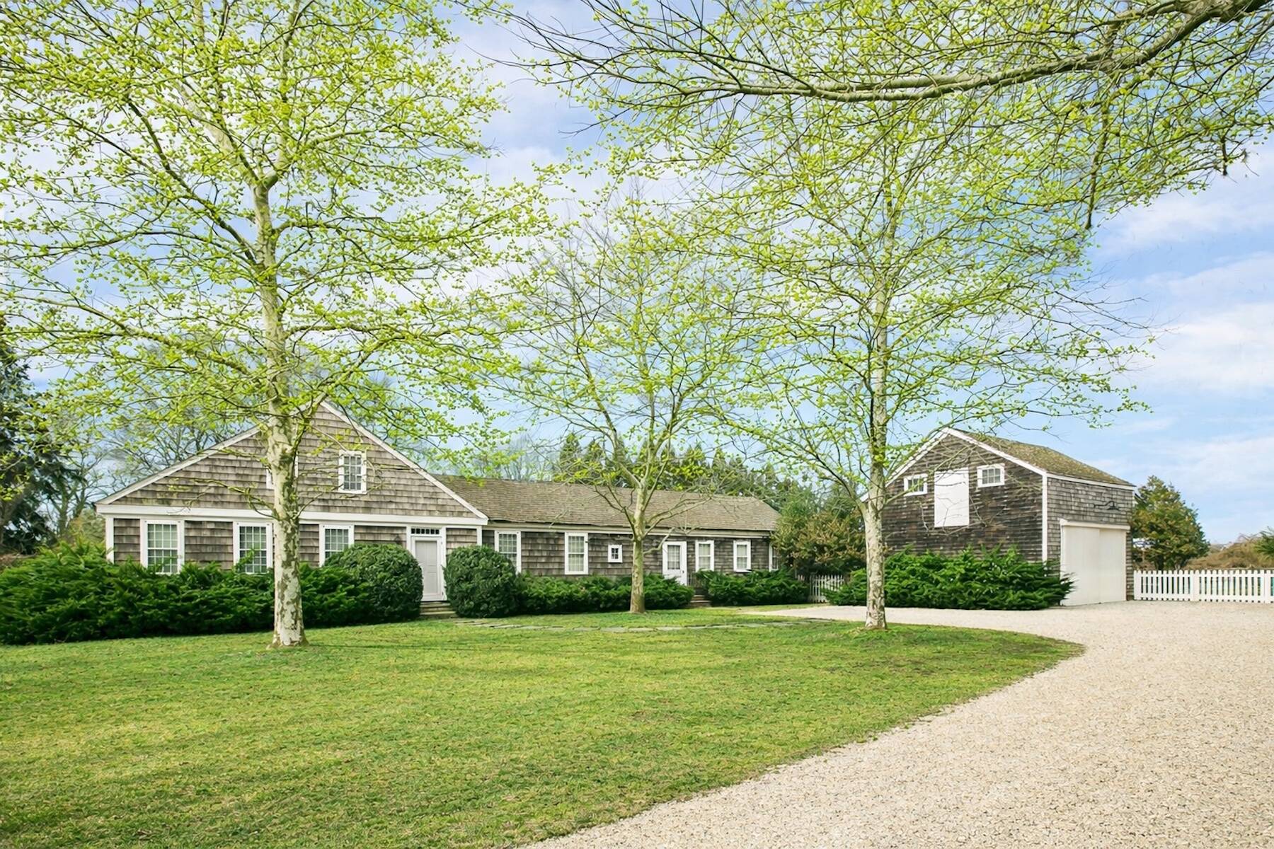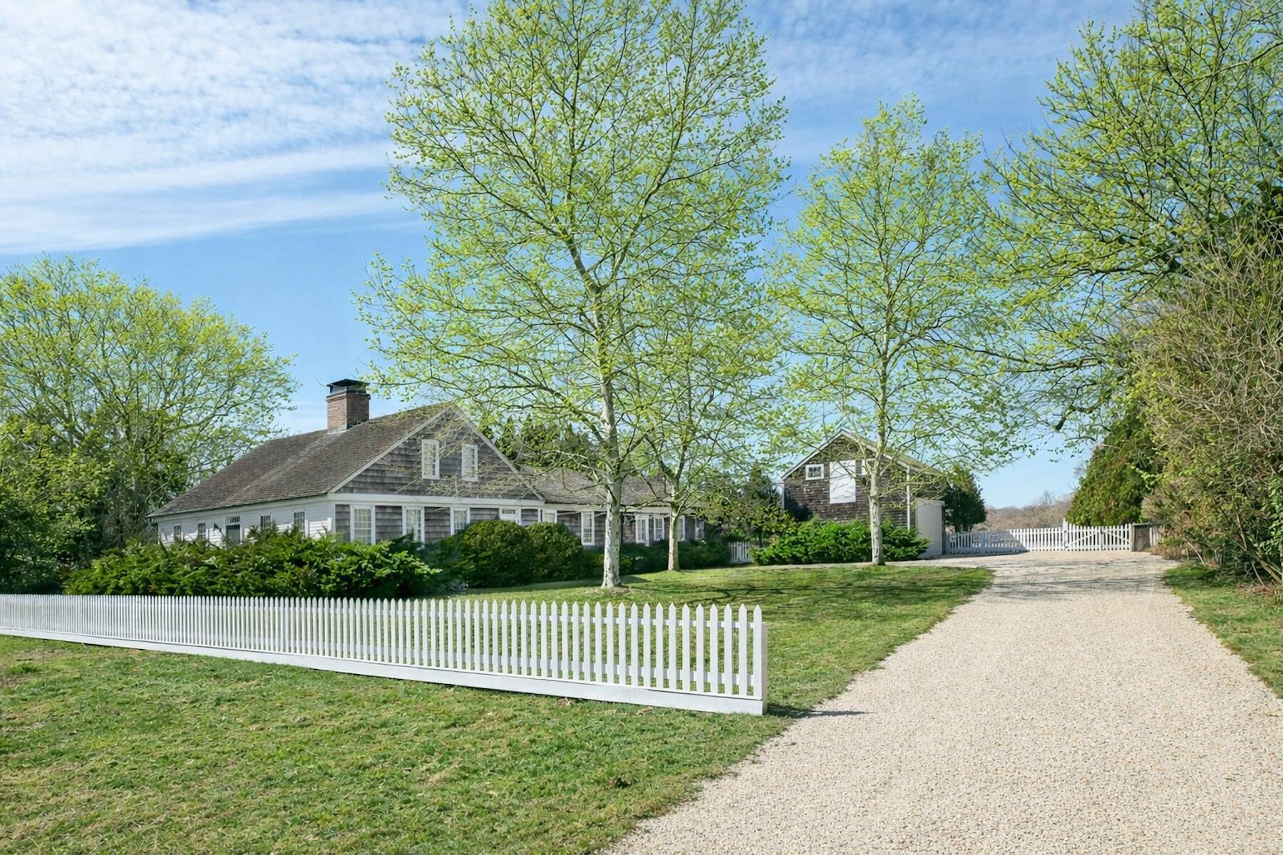 An iconic 19th-century residence set in a prime Wainscott Main Street location, an offering of this kind represents a true legacy property, seldom brought to market. Positioned on 1.7 acres abutting preserved farmland, the property offers a sense of space and a setting that harmonizes with the area's historic character. The three-bedroom, three-and-a-half-bath home balances original character with thoughtful updates, and is anchored by three wood-burning fireplaces. A barn-style garage, currently conceived as a pool house, features vaulted ceilings and preserved period details, creating a distinctive setting well suited to relaxed entertaining. The 20-by-40 gunite pool is complemented by outdoor living areas, including wisteria covered pergolas that invite long summer afternoons. Located just under a mile from Beach Lane's Wainscott Beach and in close proximity to a well-loved local farm stand, the property reflects an authentic approach to Wainscott living.