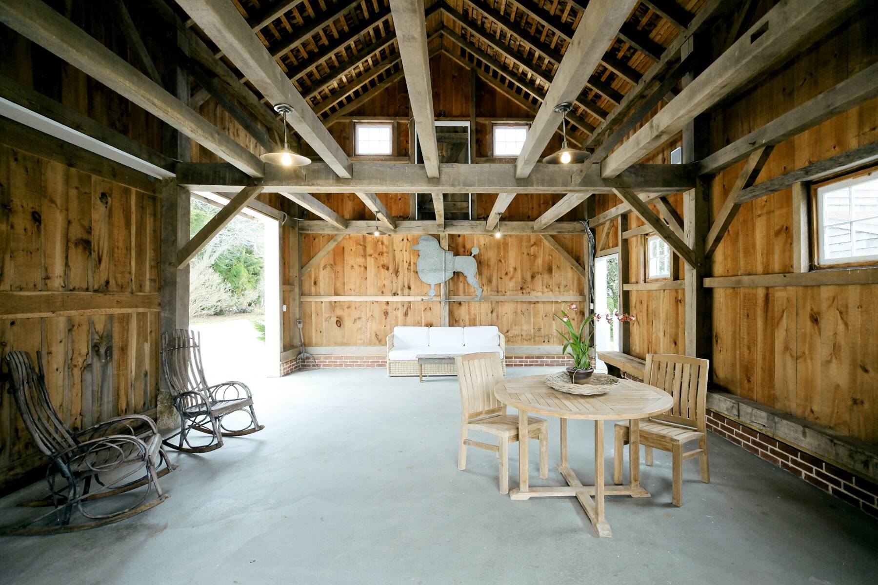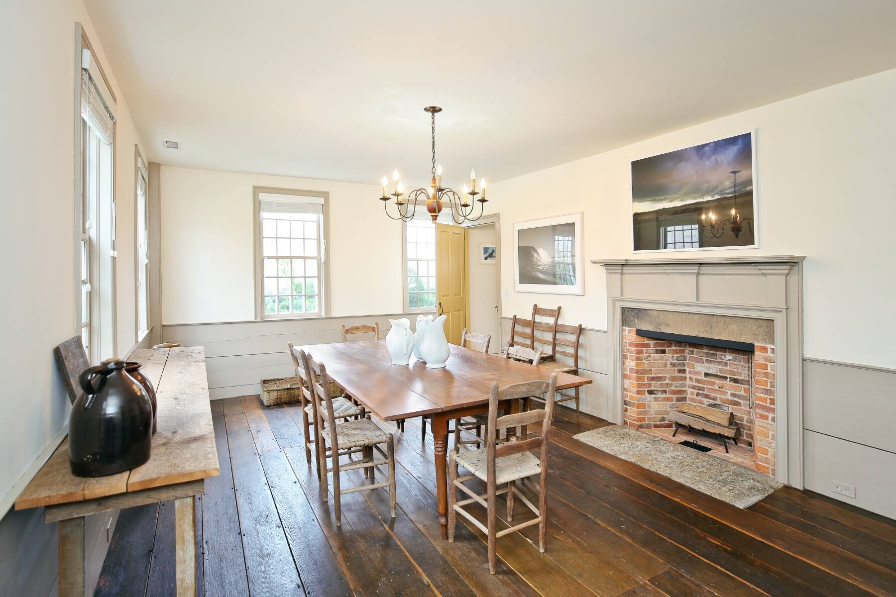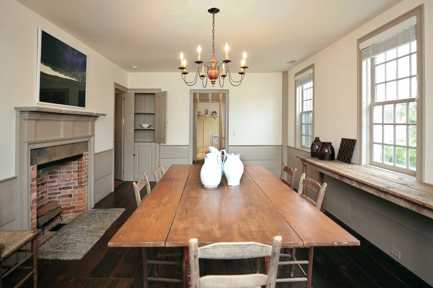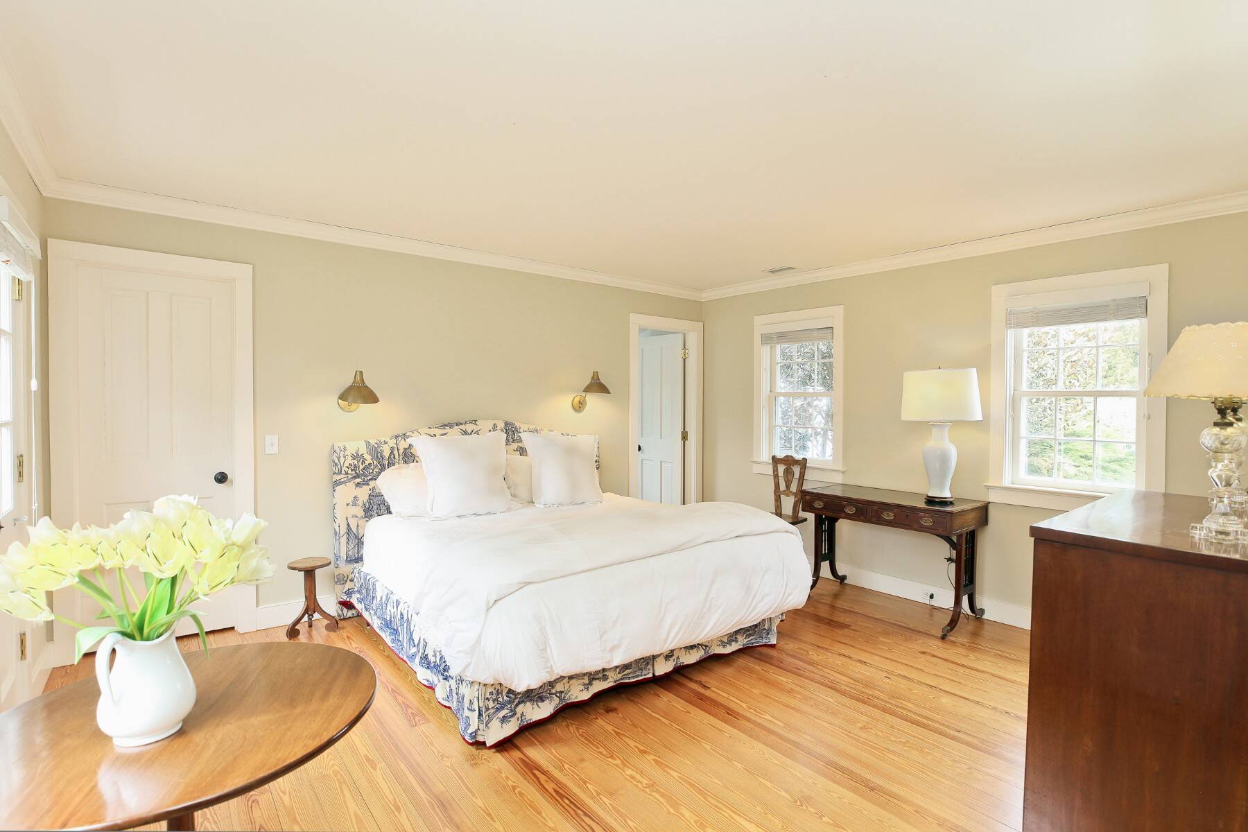 An iconic 19th-century residence set in a prime Wainscott Main Street location, an offering of this kind represents a true legacy property, seldom brought to market. Positioned on 1.7 acres abutting preserved farmland, the property offers a sense of space and a setting that harmonizes with the area's historic character. The three-bedroom, three-and-a-half-bath home balances original character with thoughtful updates, and is anchored by three wood-burning fireplaces. A barn-style garage, currently conceived as a pool house, features vaulted ceilings and preserved period details, creating a distinctive setting well suited to relaxed entertaining. The 20-by-40 gunite pool is complemented by outdoor living areas, including wisteria covered pergolas that invite long summer afternoons. Located just under a mile from Beach Lane's Wainscott Beach and in close proximity to a well-loved local farm stand, the property reflects an authentic approach to Wainscott living.