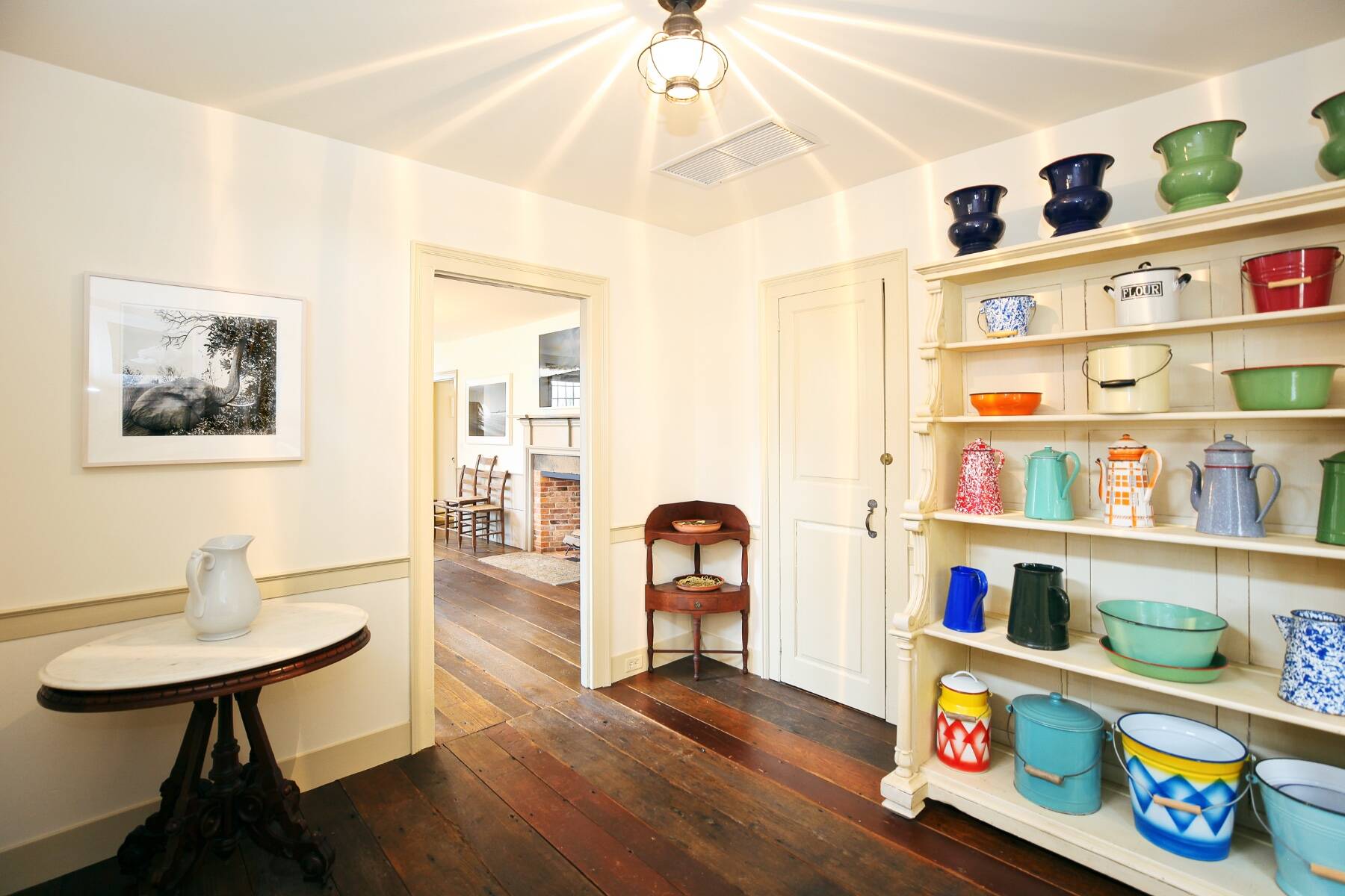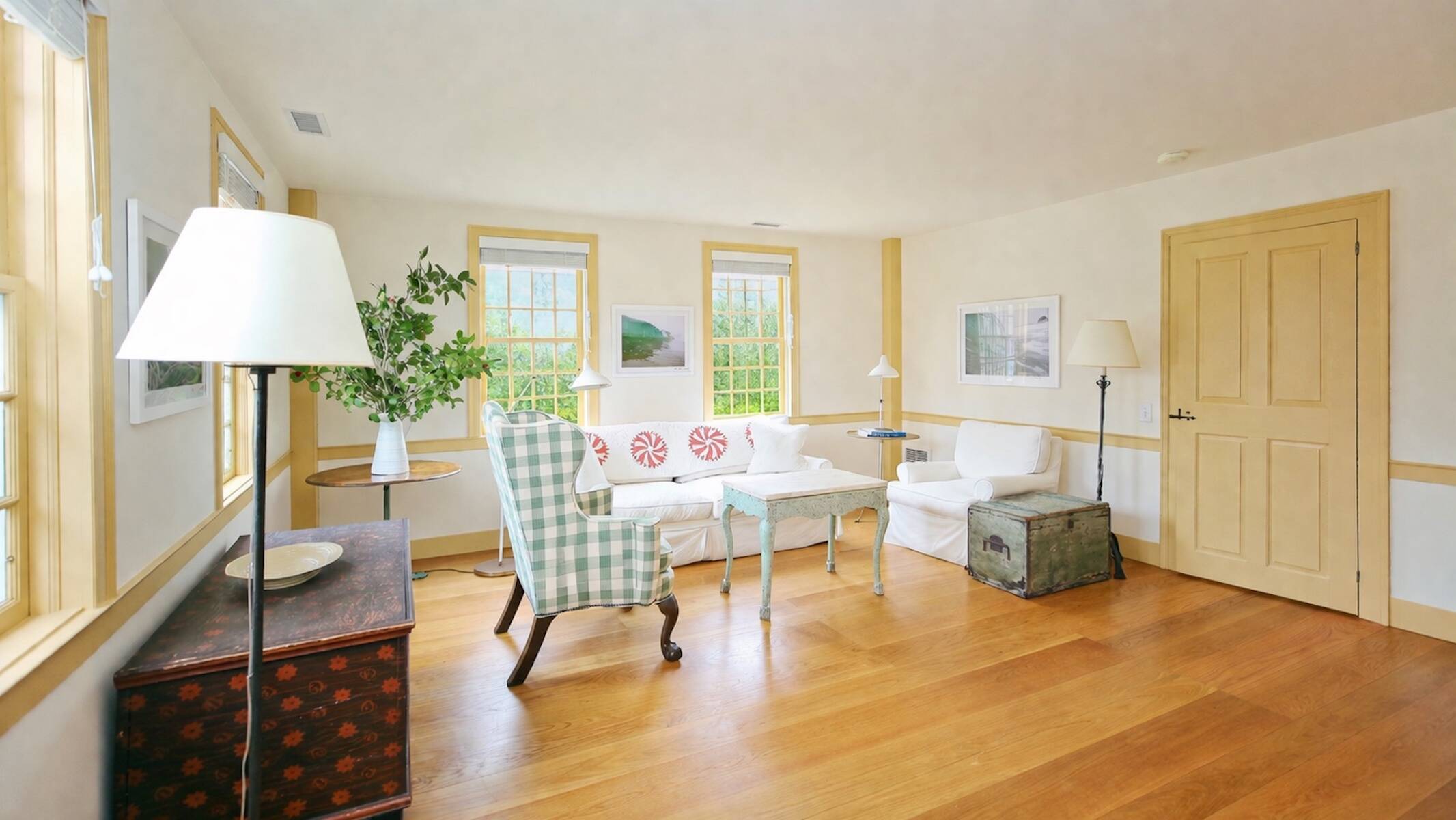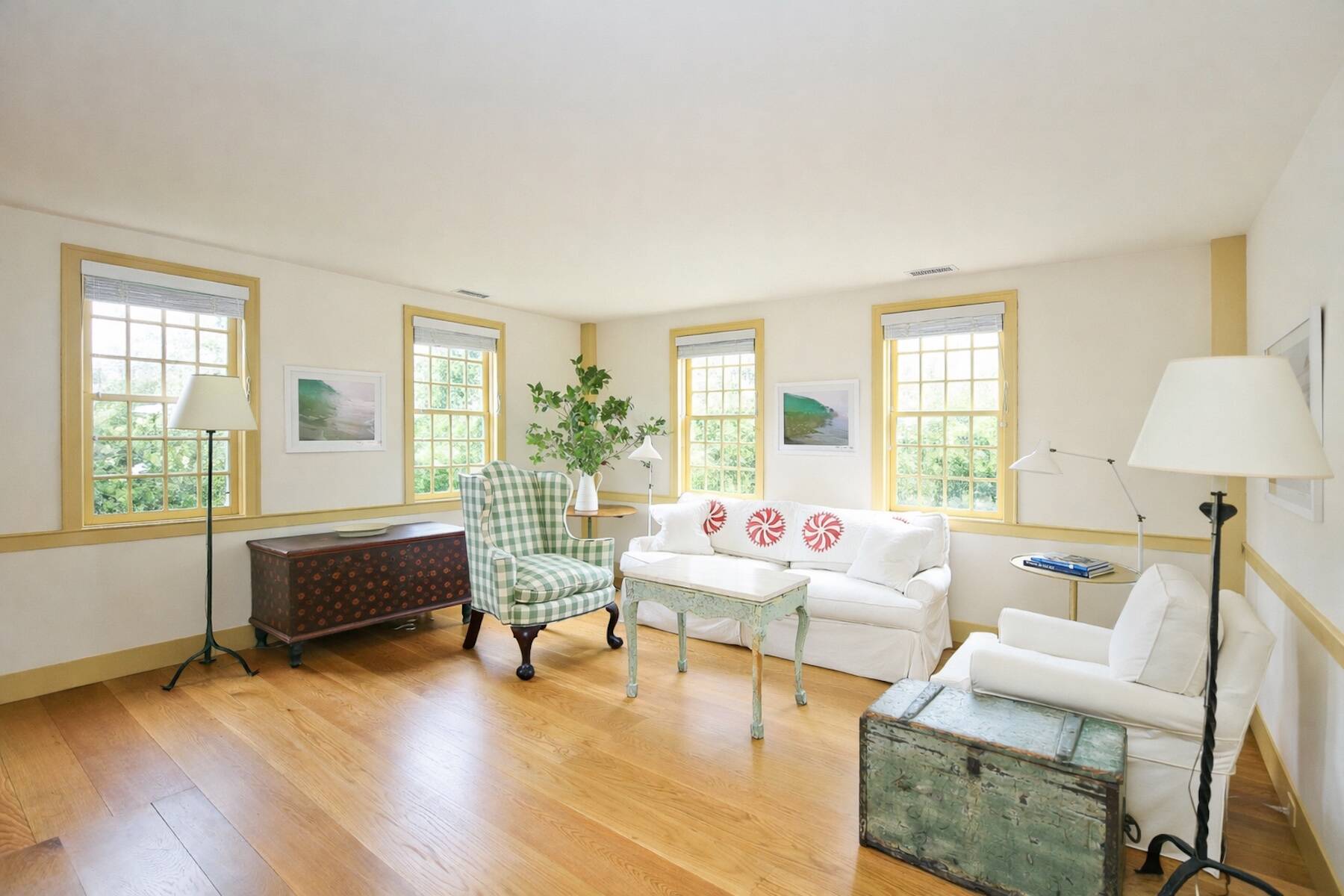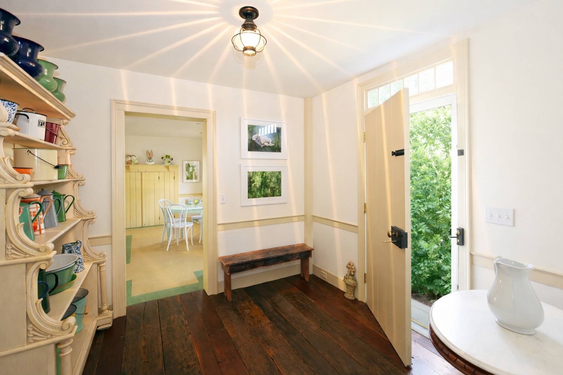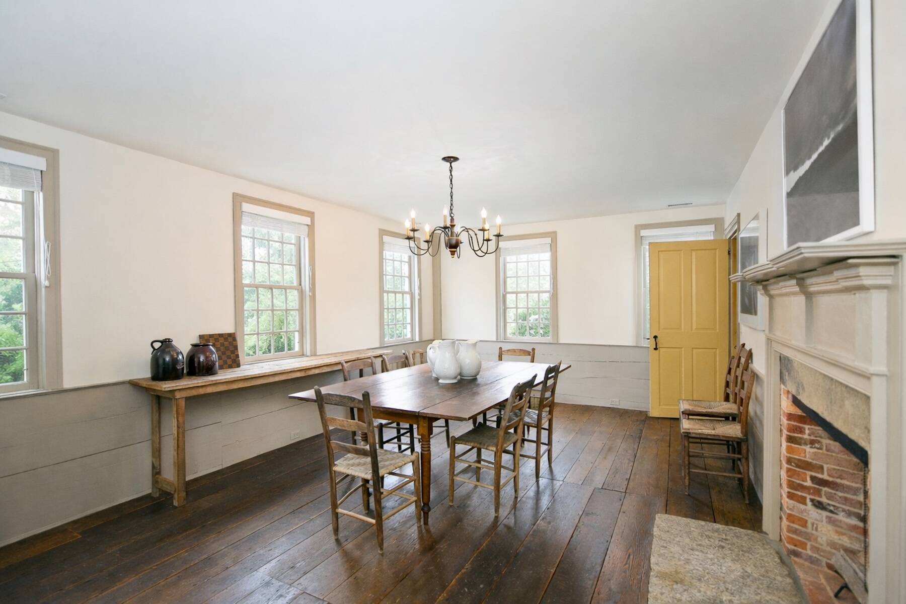 An iconic 19th-century residence set in a prime Wainscott Main Street location, an offering of this kind represents a true legacy property, seldom brought to market. Positioned on 1.7 acres abutting preserved farmland, the property offers a sense of space and a setting that harmonizes with the area's historic character. The three-bedroom, three-and-a-half-bath home balances original character with thoughtful updates, and is anchored by three wood-burning fireplaces. A barn-style garage, currently conceived as a pool house, features vaulted ceilings and preserved period details, creating a distinctive setting well suited to relaxed entertaining. The 20-by-40 gunite pool is complemented by outdoor living areas, including wisteria covered pergolas that invite long summer afternoons. Located just under a mile from Beach Lane's Wainscott Beach and in close proximity to a well-loved local farm stand, the property reflects an authentic approach to Wainscott living.