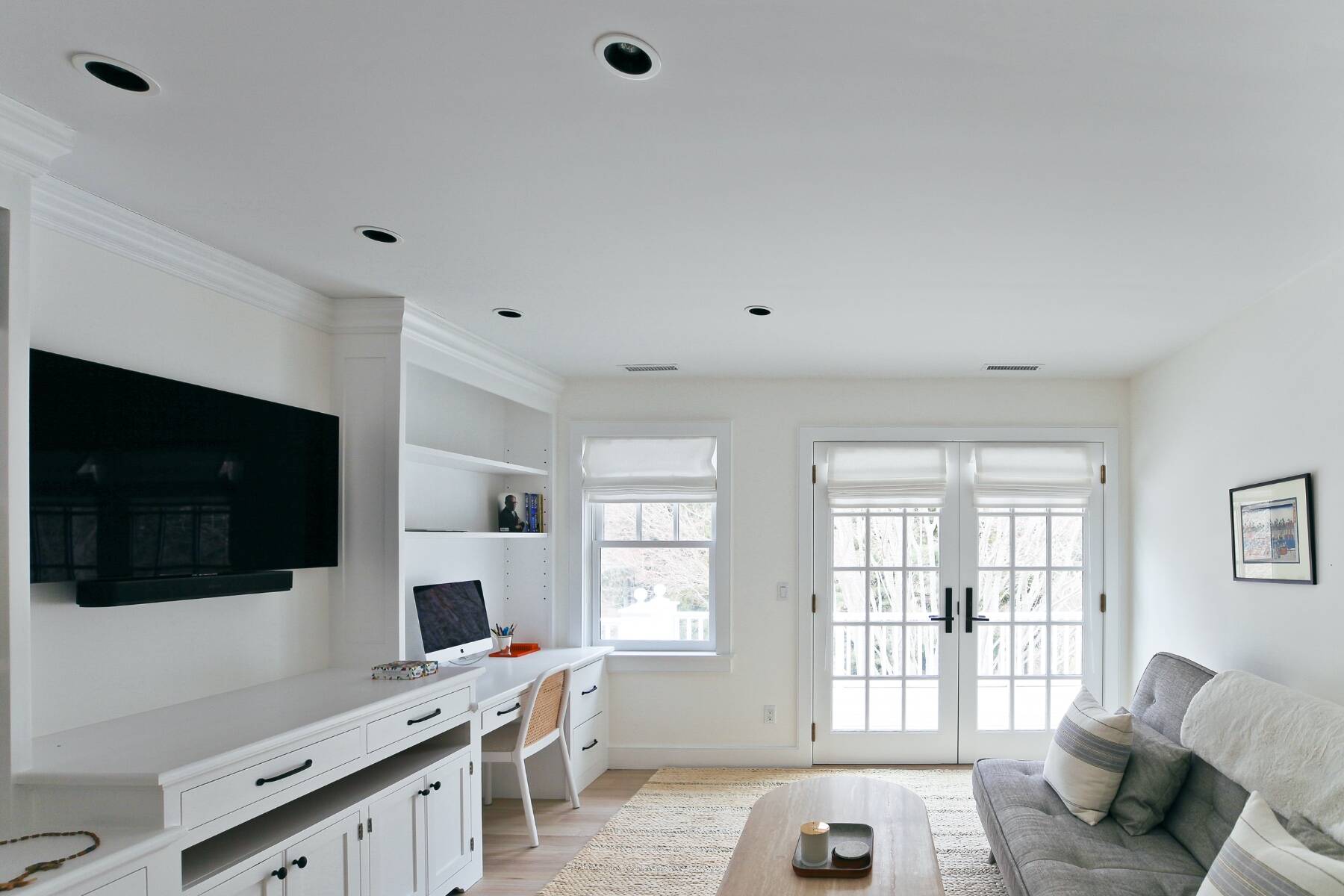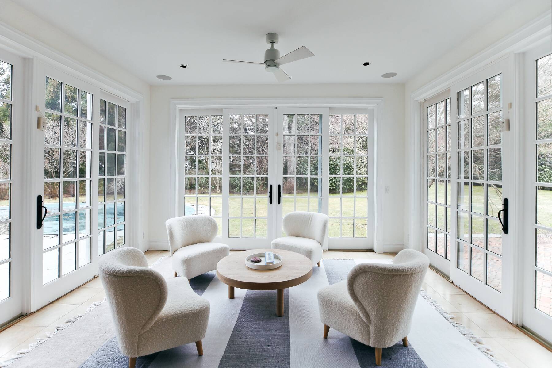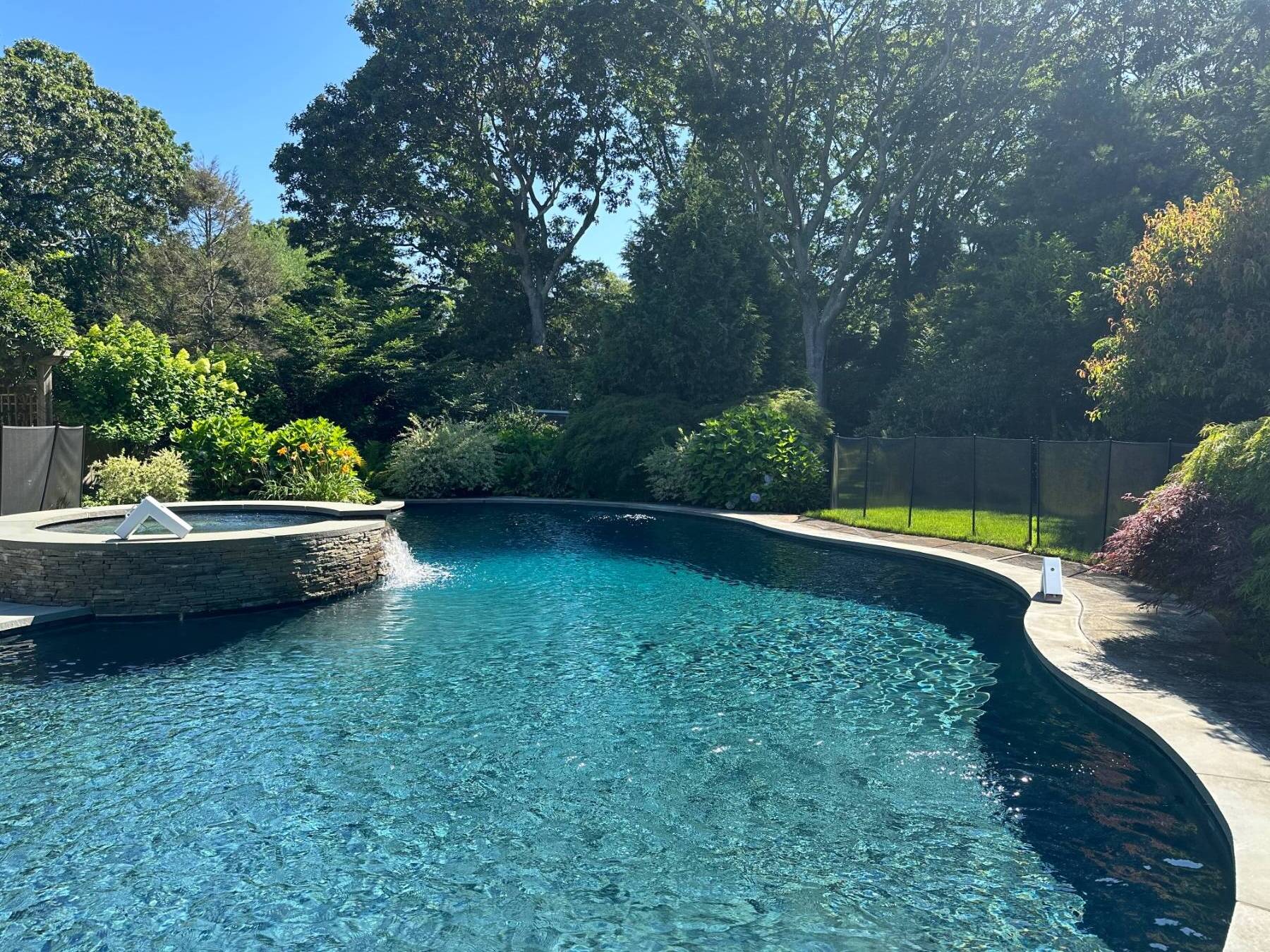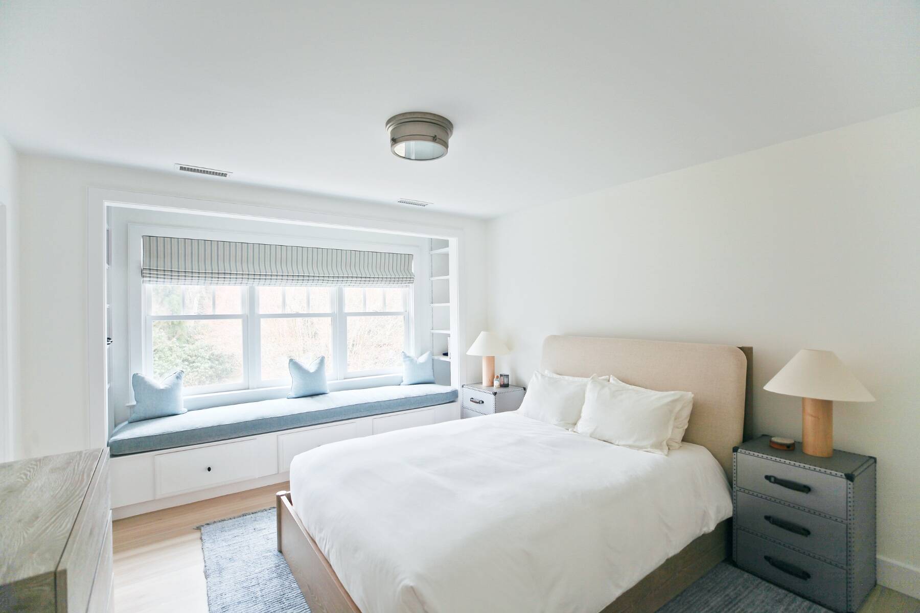 Recently renovated, this beautiful six-bedroom home is ideally positioned less than a mile from Indian Wells Beach and just 0.8 miles to the village. With ten-foot ceilings, bleached floors, and a thoughtfully designed 7,000-square-foot layout spanning three levels, the home's southern exposure fills every space with abundant natural light. The first floor features a gracious living room, eat-in kitchen with an expansive family room, sunroom, formal dining room, library, a first-floor primary suite, an additional bedroom and bath, laundry room, and powder room. Upstairs, a second primary suite offers a private balcony overlooking the pool and gardens, along with three additional ensuite guest rooms with charming window seats and a dedicated office with a pull-out couch. The lower level is finished with a media room, recreation room, gym, and full bath. Beautifully landscaped grounds showcase a gunite pool and spa, outdoor shower, grilling station, outdoor fireplace, and an attached three-car garage. With its close proximity to both town and ocean beaches, this is a turnkey Amagansett retreat designed for effortless year-round or summer living