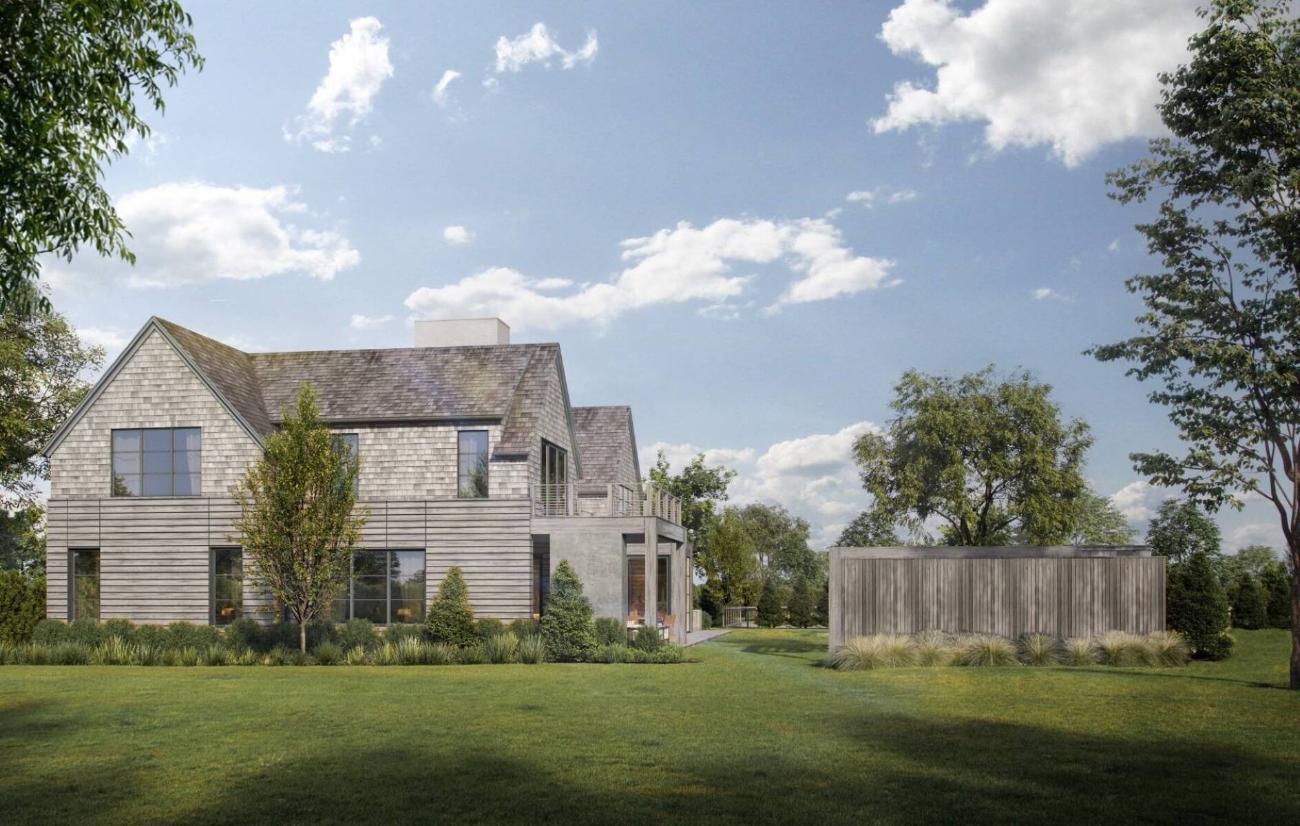 Situated on one of Sagaponack's most coveted lanes South of the Highway, this newly constructed estate offers approximately 9,700 square feet of living space, complemented by 1,157 square feet of accessory structures. Thoughtfully designed for both luxury living and entertaining, the home features 8 bedrooms, 9 full baths, and 3 half baths across three levels, all serviced by an elevator. A grand foyer welcomes you into expansive living spaces, including an oversized chef's kitchen with breakfast nook that opens seamlessly to the great room, highlighted by a 60 inch wood burning fireplace. Formal dining with butler's pantry, along with a separate family room leading to a covered porch with gas fireplace, creates multiple areas for gathering. A first floor secondary primary suite provides ideal accommodations for guests, along with a mudroom, laundry, and direct access to the two car garage. The second floor is anchored by an oversized primary suite featuring a masonry fireplace, private terrace, spa like bath, and two walk in closets. Three additional en suite bedrooms, an outdoor common terrace with gas fireplace, and a second laundry complete the level. The lower level is designed for recreation and wellness, offering a large entertaining room with sit down bar, theater, and a full gym with wellness bath including sauna, steam, and cold plunge. Three additional en suite bedrooms complete this level. Outdoor amenities rival a private resort, featuring a sunken all weather tennis court, a 50 foot pool with spa, and a pool house with pergola, wet bar, bathroom, and outdoor shower. Expansive patio areas provide the perfect setting for outdoor entertaining. Scheduled for completion February 2027, with the opportunity to be in by early next year. Ideally located just moments from Sagg Store and approximately one mile to Town Line Beach, this is a rare opportunity to secure a brand new Sagaponack South estate in a premier location.