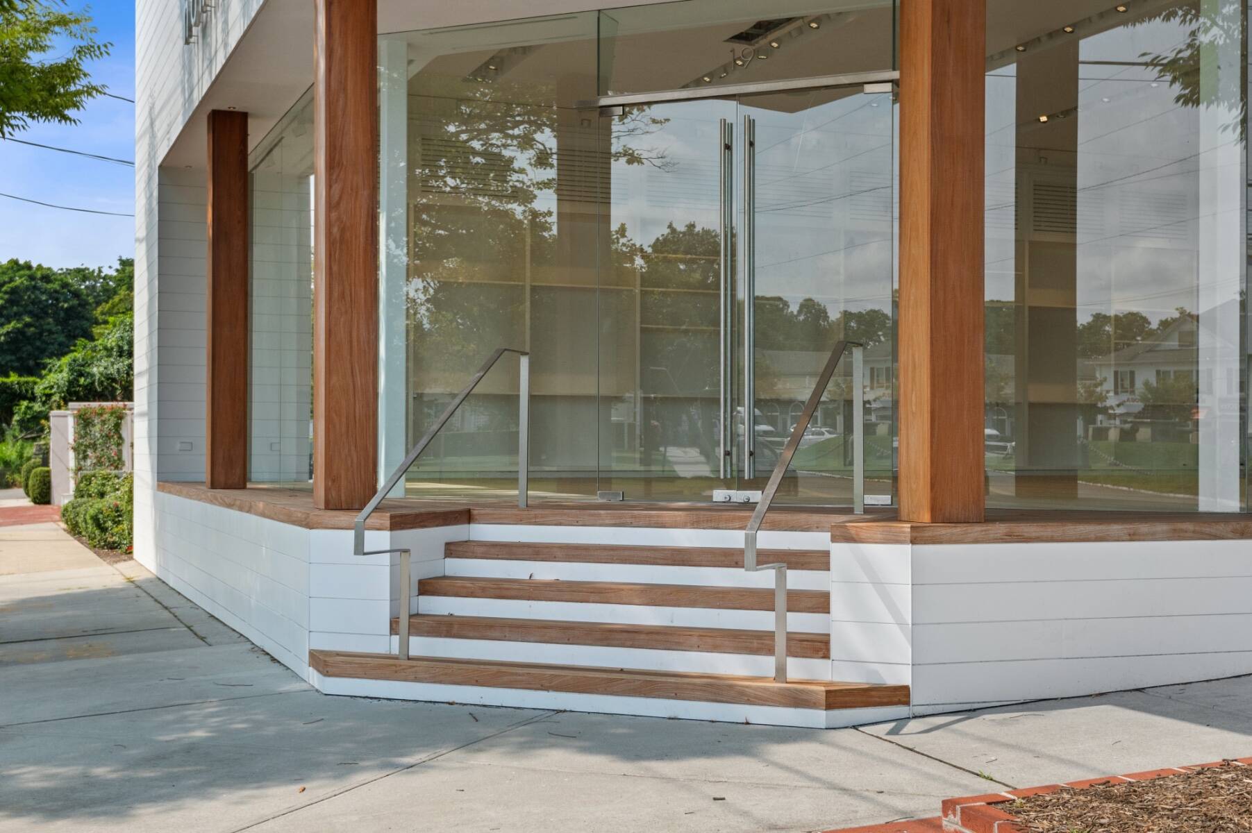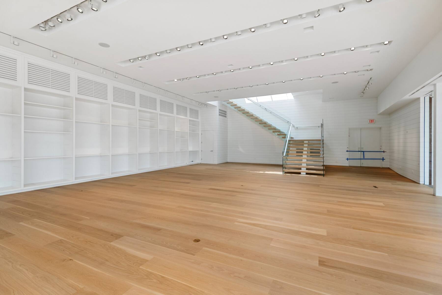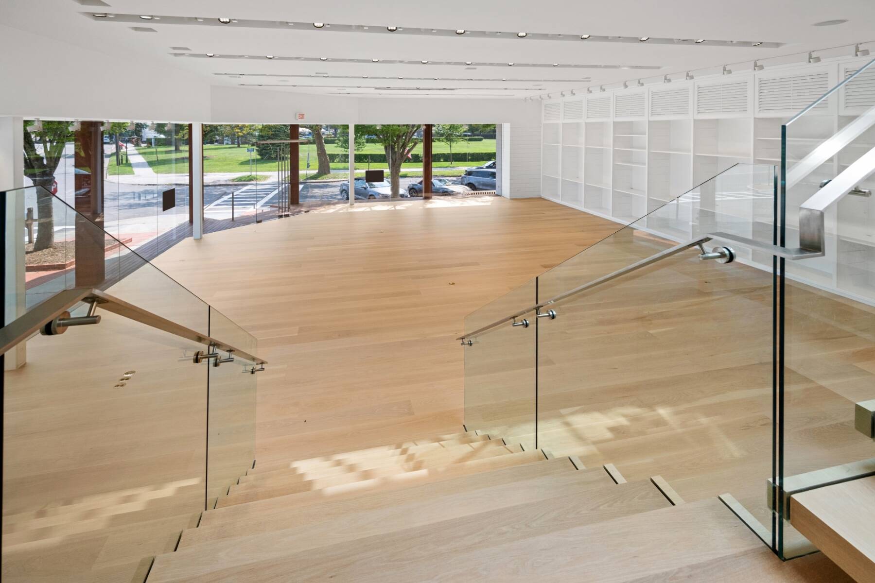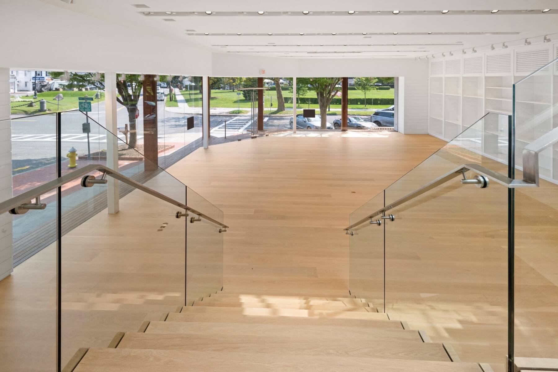 The general design inspiration for this space is Mies Van Der Rohe at the beach. The large open space act as a temple to the gorgeous east end light and the beautiful village. Clean lines and open spaces, combined with Ipe woods, Natural white oak, Ship Lap Cedar outside and Ship Lap Oak on the interior, create a warm and welcoming space. The building has the best electric, heating/ac, sound system, programmable LED lights and tracks, oak plank floors, all Reilly Ipe windows. The first floor has approx. 2,300sf and the second floor has approx. 1,200sf interior storage space and 1,000sf exterior. The second floor also features a large balcony overlooking lake Agawam. The two exterior walls of glass make the village and park part of the of the experience of the space, and from the outside, for the visibility, the interior has to pedestrians and vehicles. The natural light and large windows create the perfect environment for any retail opportunity, gallery, or even an art foundation.