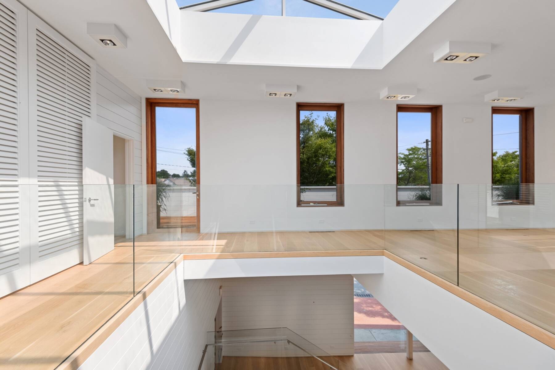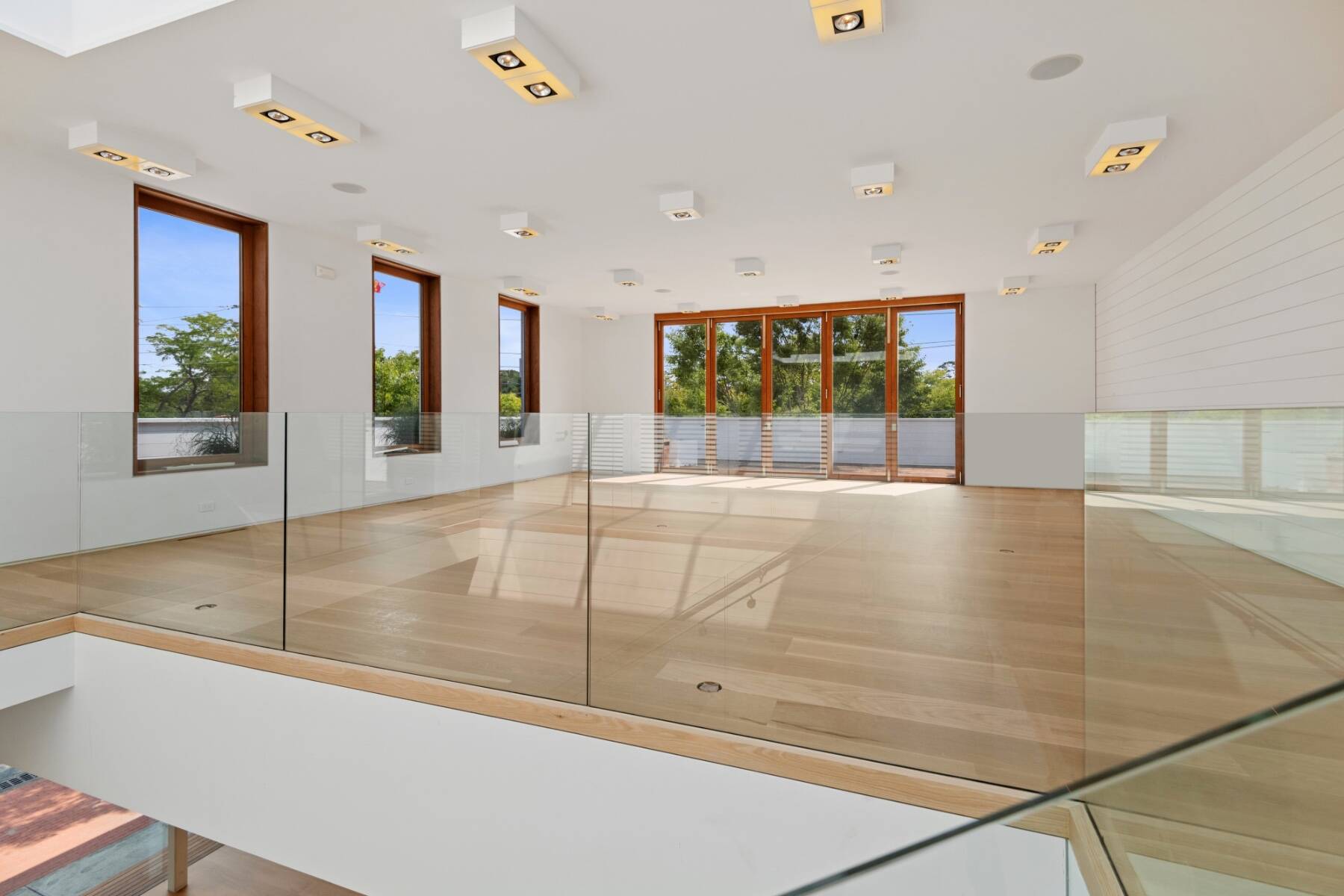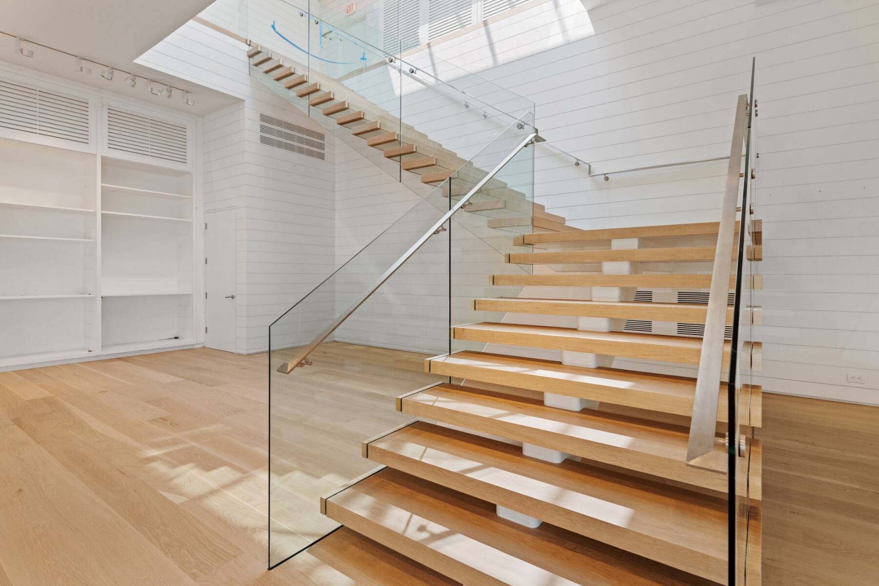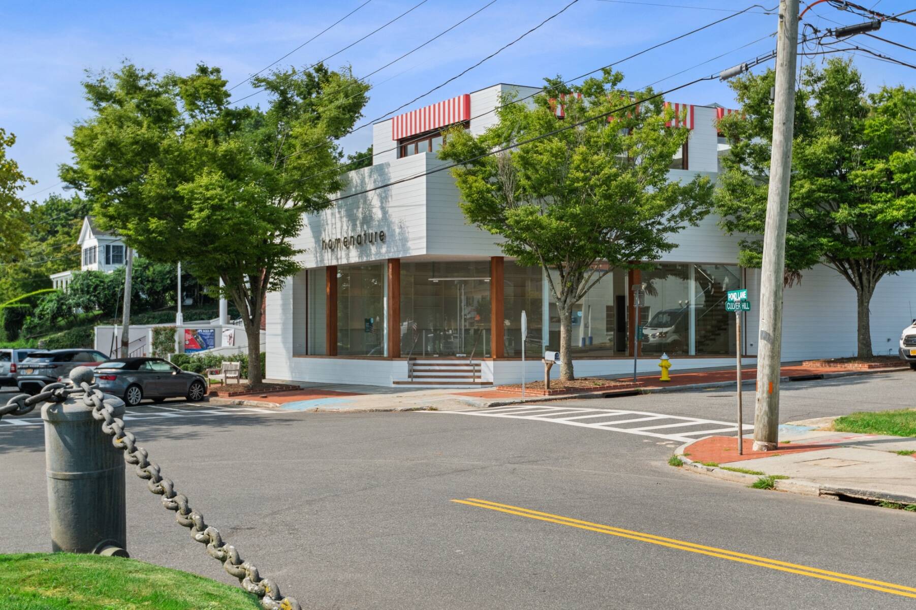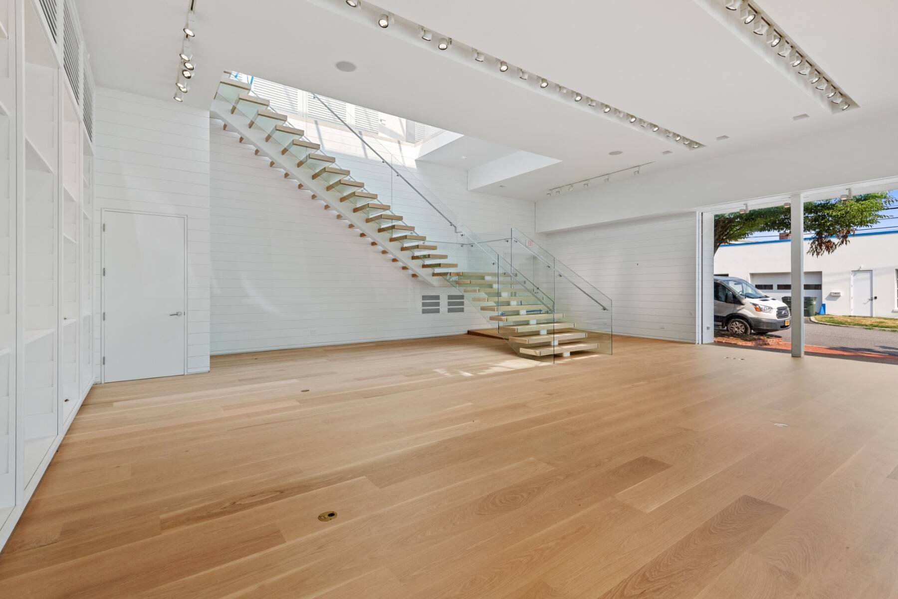 The general design inspiration for this space is Mies Van Der Rohe at the beach. The large open space act as a temple to the gorgeous east end light and the beautiful village. Clean lines and open spaces, combined with Ipe woods, Natural white oak, Ship Lap Cedar outside and Ship Lap Oak on the interior, create a warm and welcoming space. The building has the best electric, heating/ac, sound system, programmable LED lights and tracks, oak plank floors, all Reilly Ipe windows. The first floor has approx. 2,300sf and the second floor has approx. 1,200sf interior storage space and 1,000sf exterior. The second floor also features a large balcony overlooking lake Agawam. The two exterior walls of glass make the village and park part of the of the experience of the space, and from the outside, for the visibility, the interior has to pedestrians and vehicles. The natural light and large windows create the perfect environment for any retail opportunity, gallery, or even an art foundation.